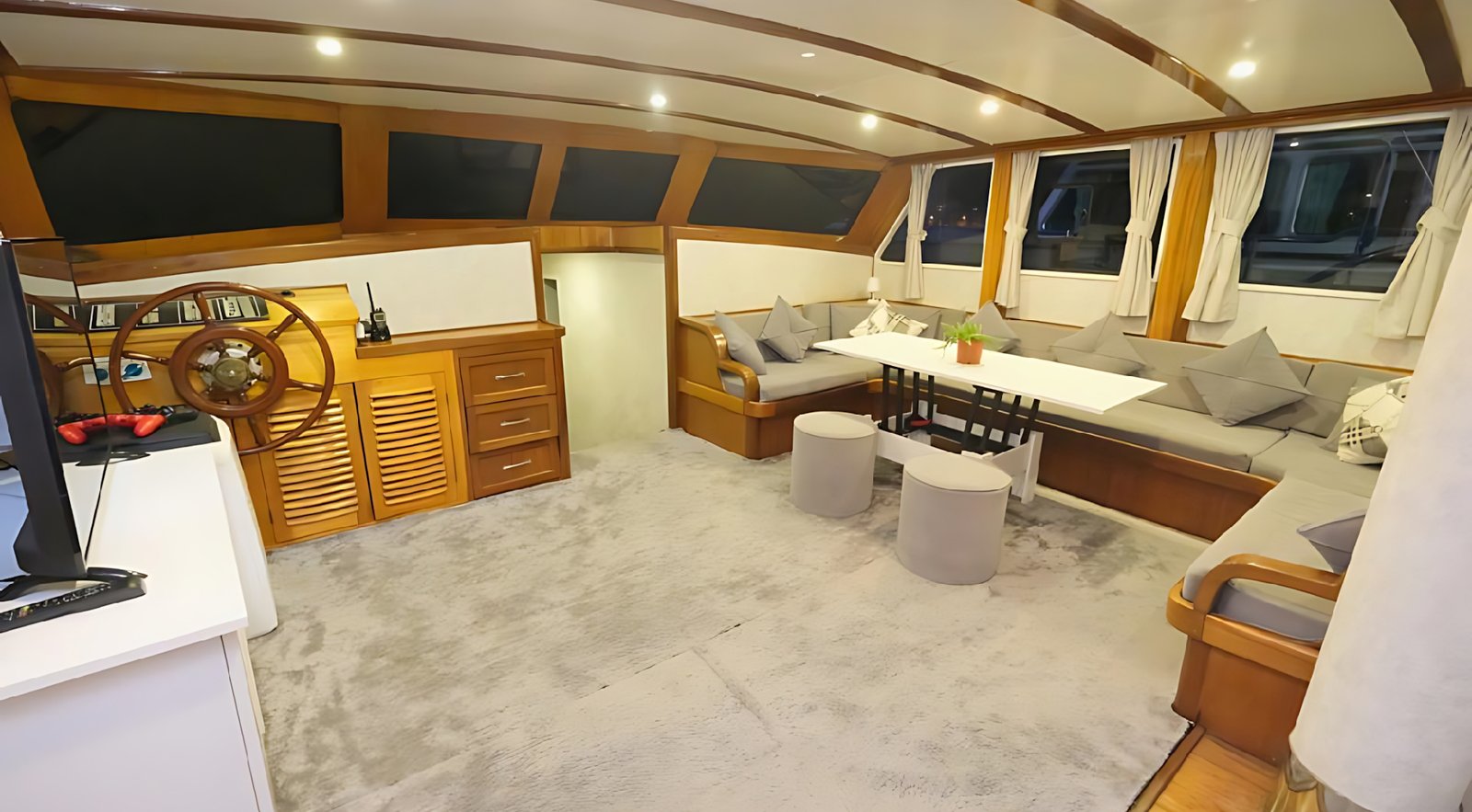 Ayrıca salonda LCD TV, DVD oynatıcı, müzik seti siz değerli mavi yolculuk konuklarımızın hizmetindedir.