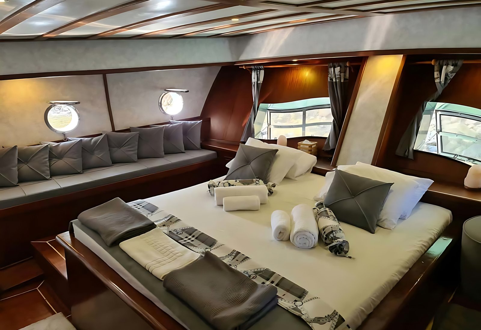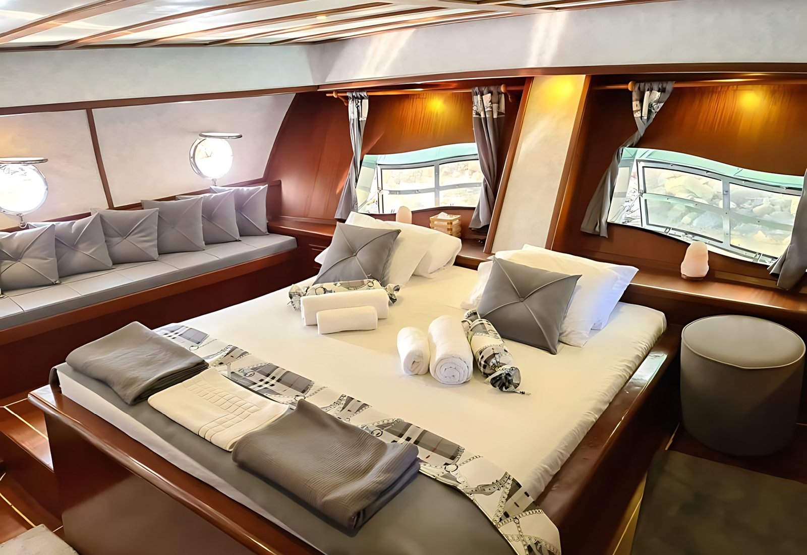 2 Master Kabin, 2 Double Kabin, 2 Twin Kabin olmak üzere birbirinden şık ve rahat, kendine ait duş, WC ve kliması olan yatımız 6 kamaraya sahiptir.