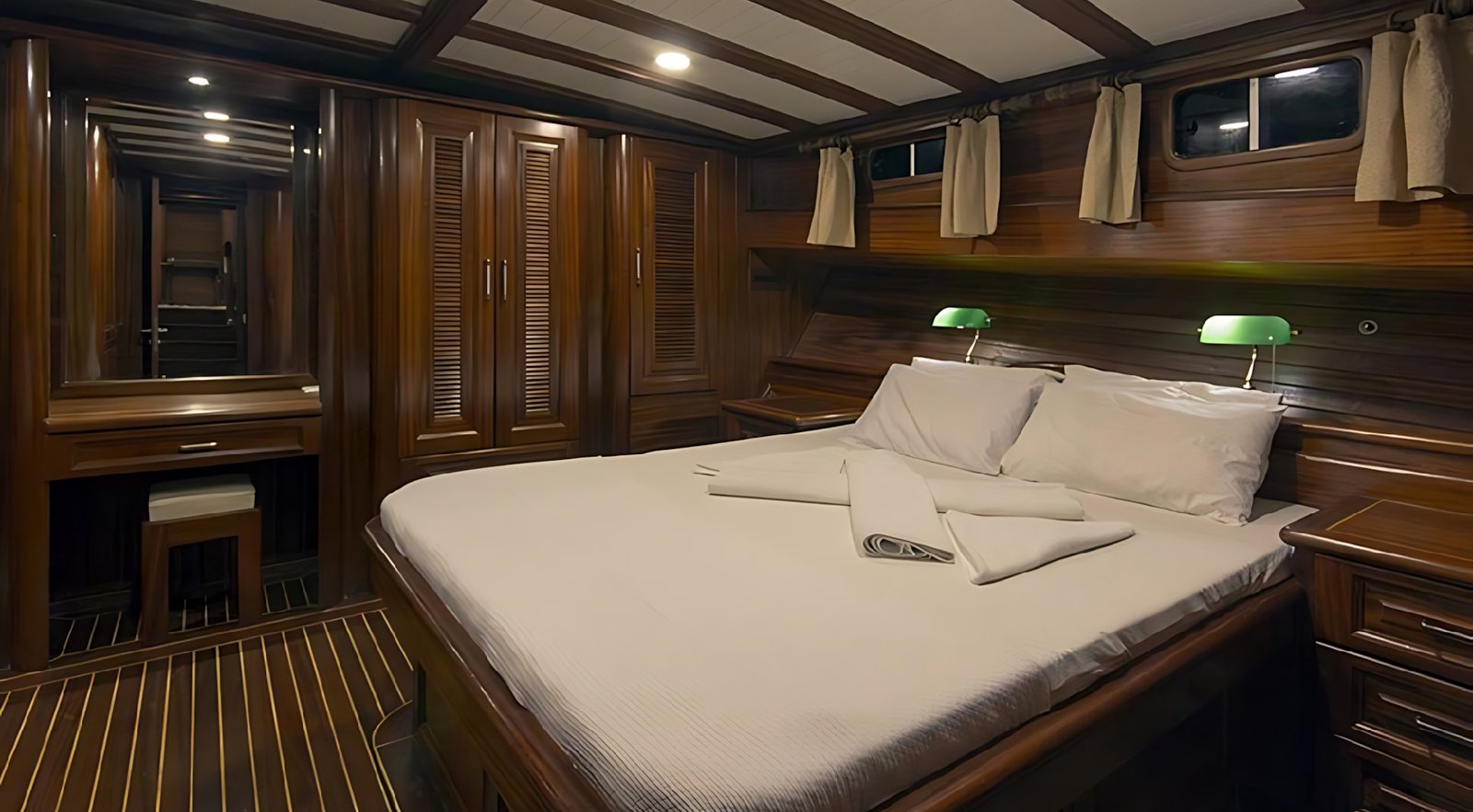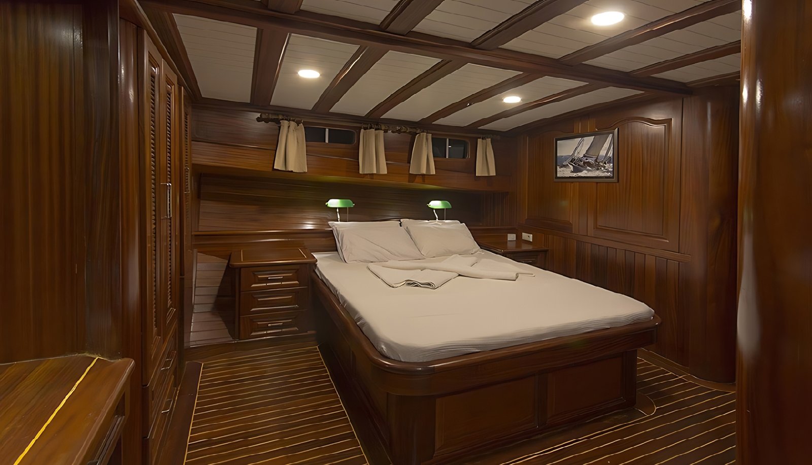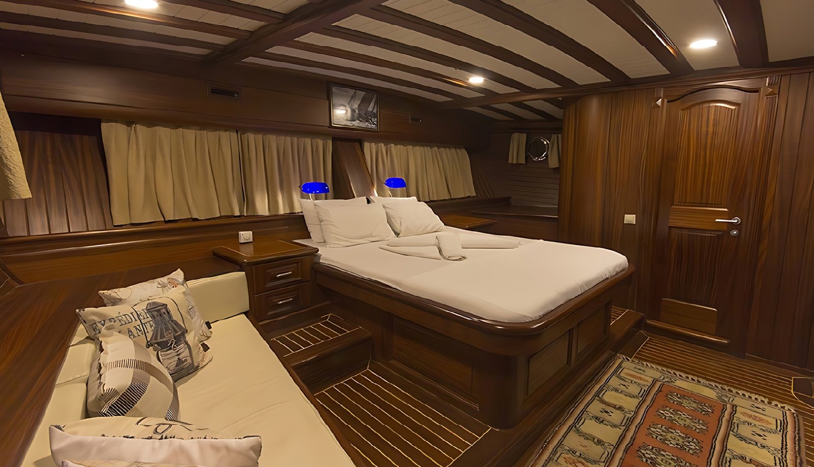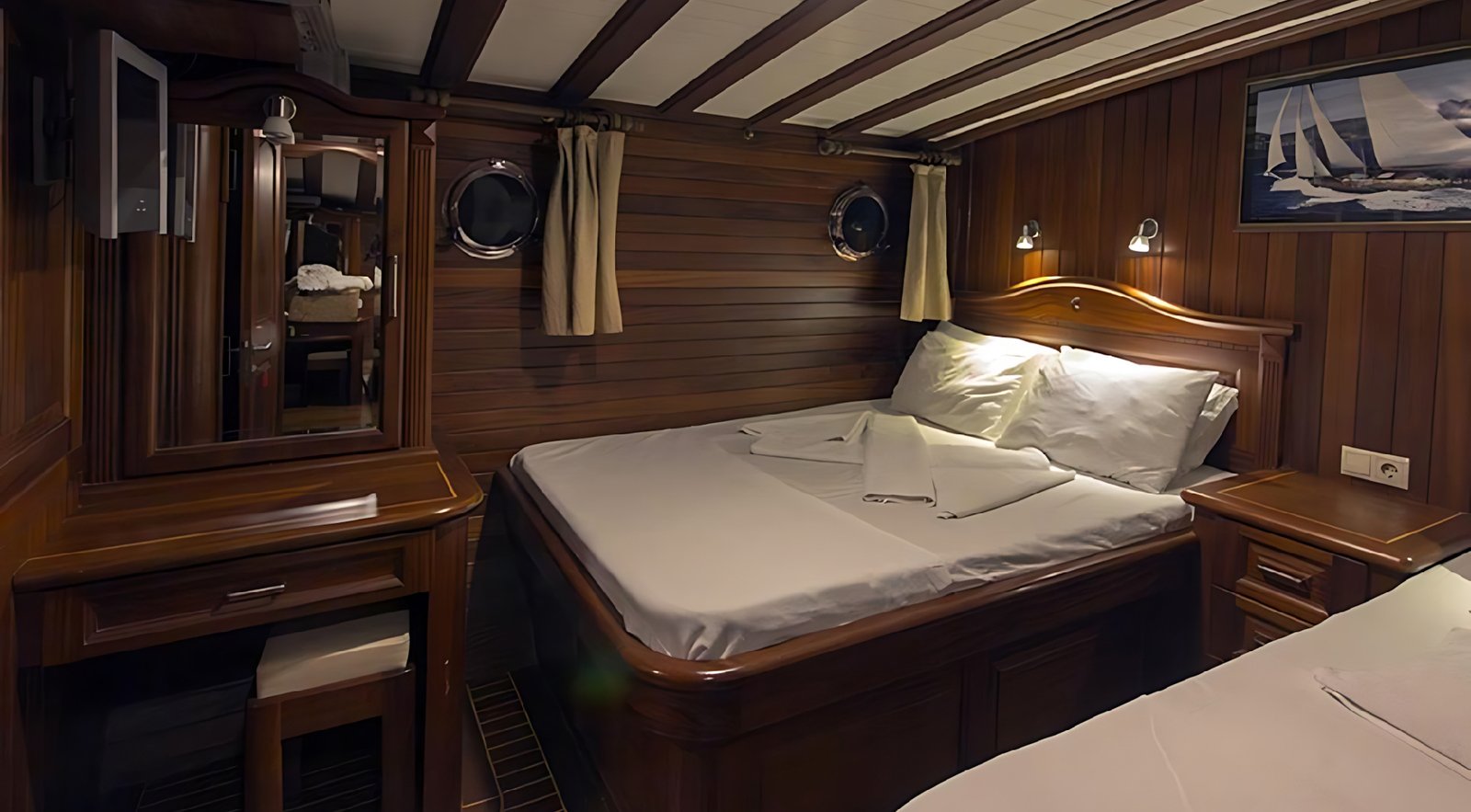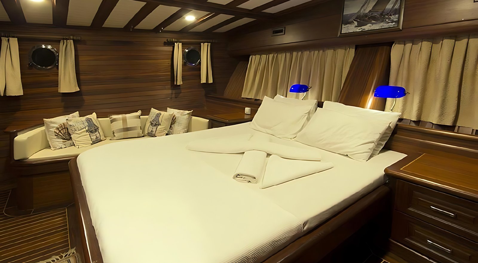 Teknemizde 2 Master kabin 4 Twin olmak üzere toplam 12 misafirin konaklayabileceği Vip yat'tır. Her kabinde son derece konforlu ve size özel duş ve wc imkanı sunmaktadır.