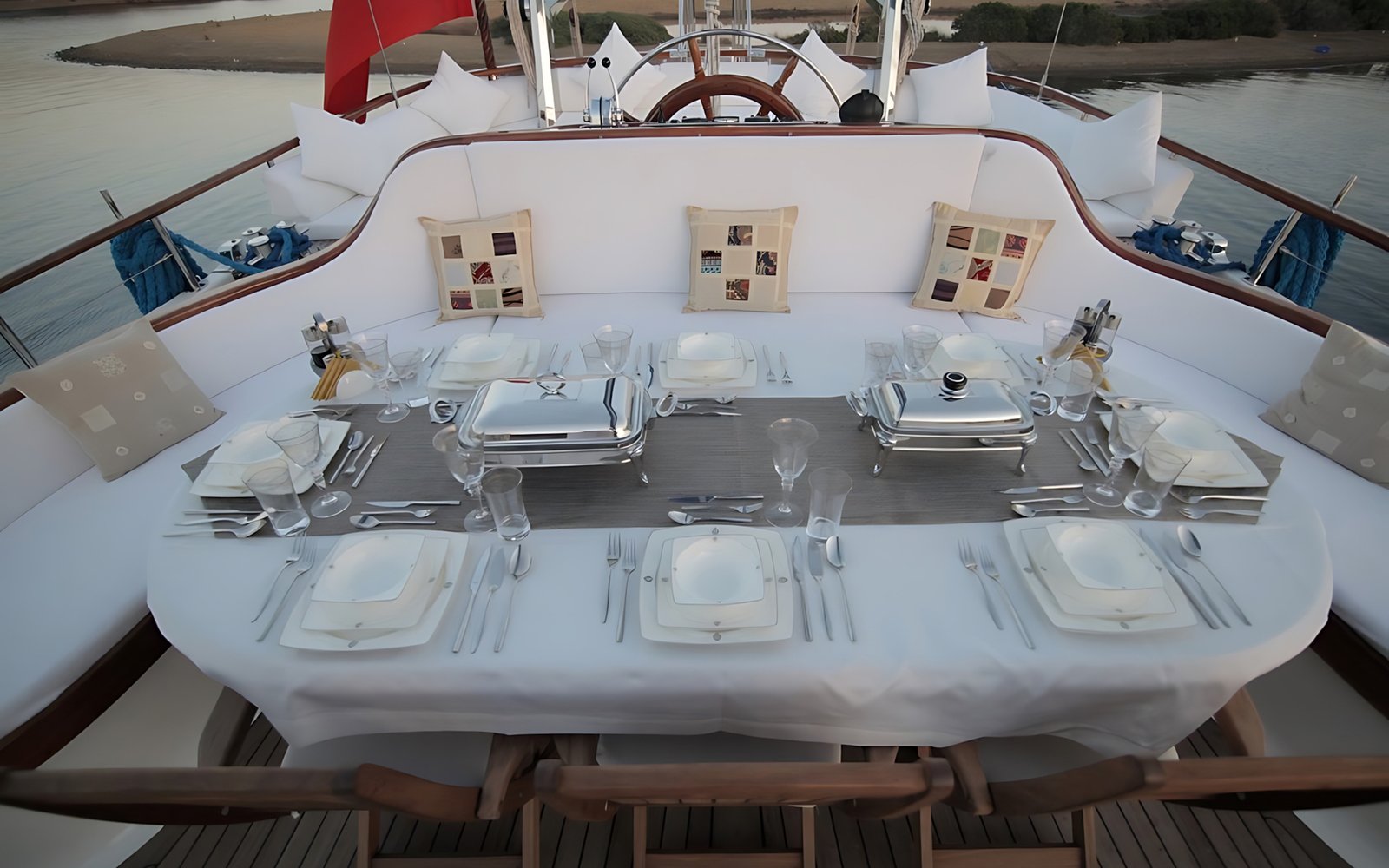 Seçenek 3 Siz hiç bir şeye karışmaz tatiliniz buyunca size tam pansiyon konaklama sunarız. Bu durumda Standart, Lüks ya da Delüks menülerimizden birini tercih ederek kişi başı günlük 35 ile 55 Euro arasında değişen bir bedel ödeyerek alkollü içecekler hariç herşey dahil tatilinizi yapabilirsiniz. Alkollü içeceklerinizi dilediğiniz şekilde temin edip tekneye getirebilirsiniz.