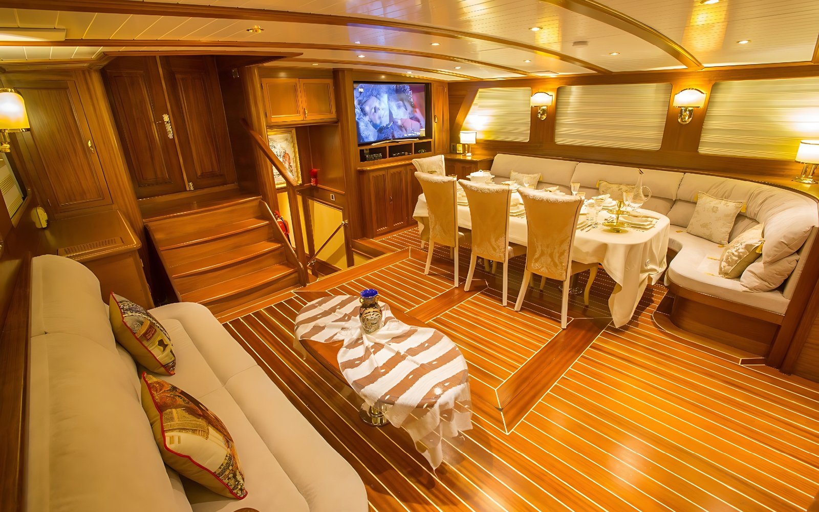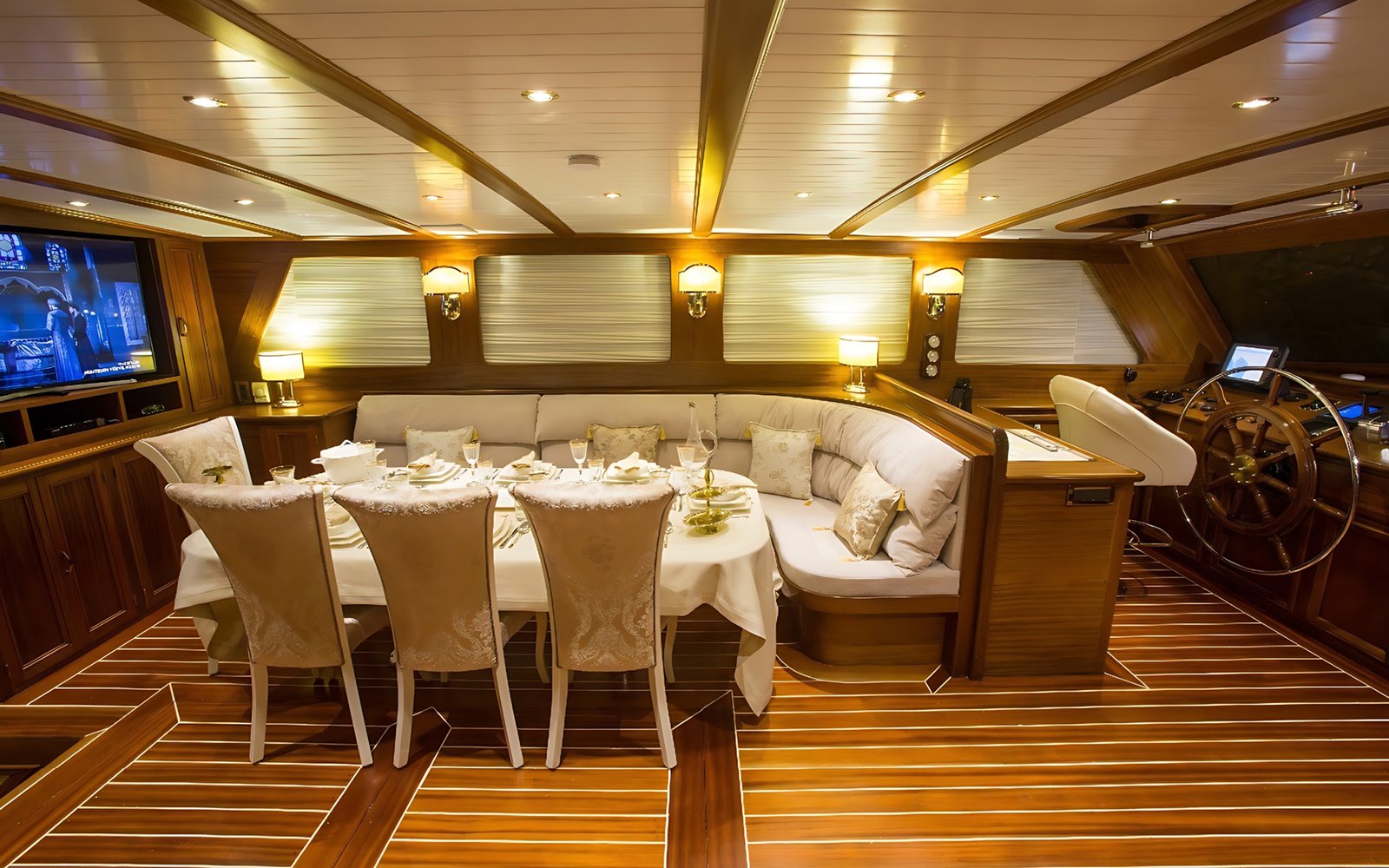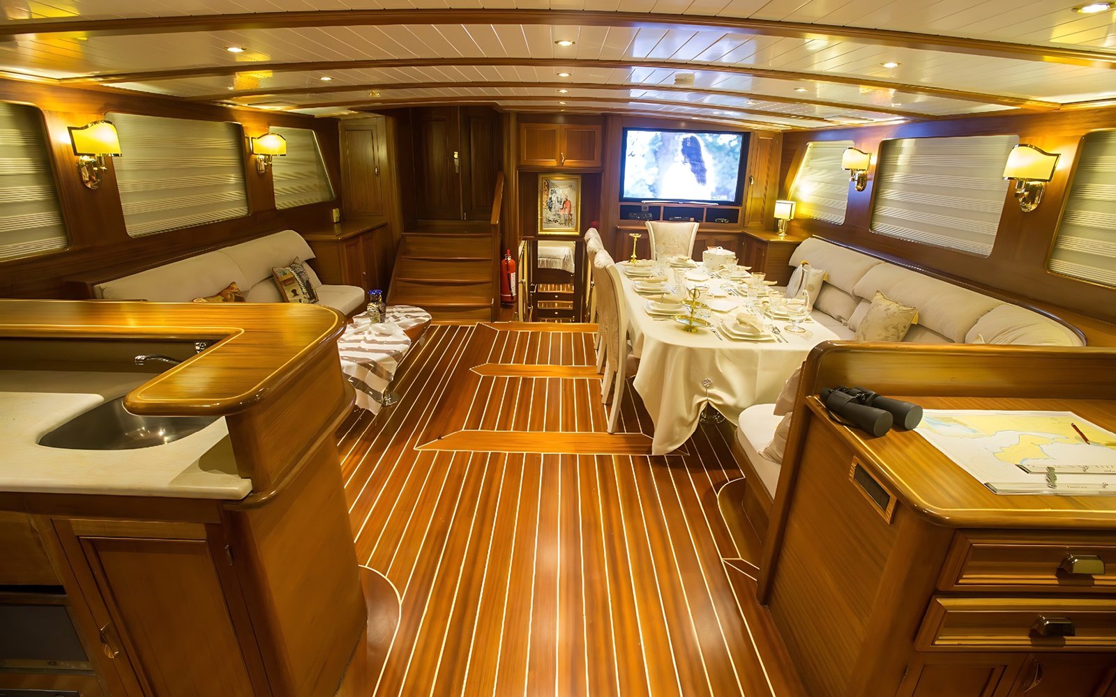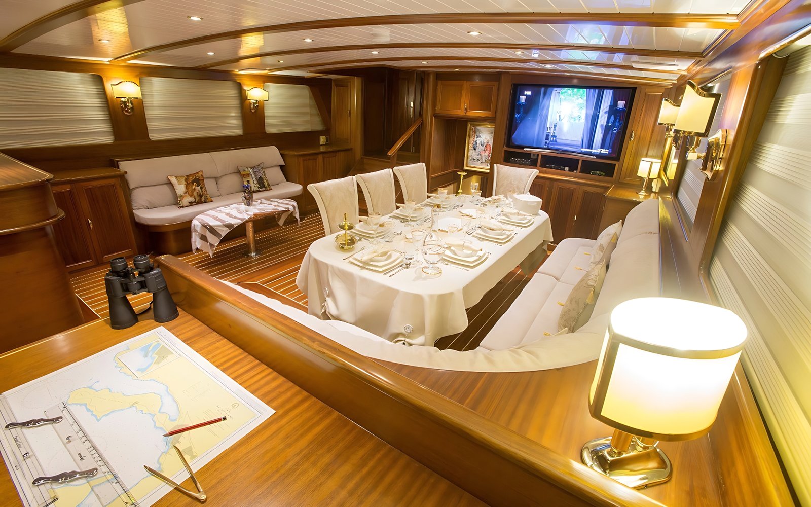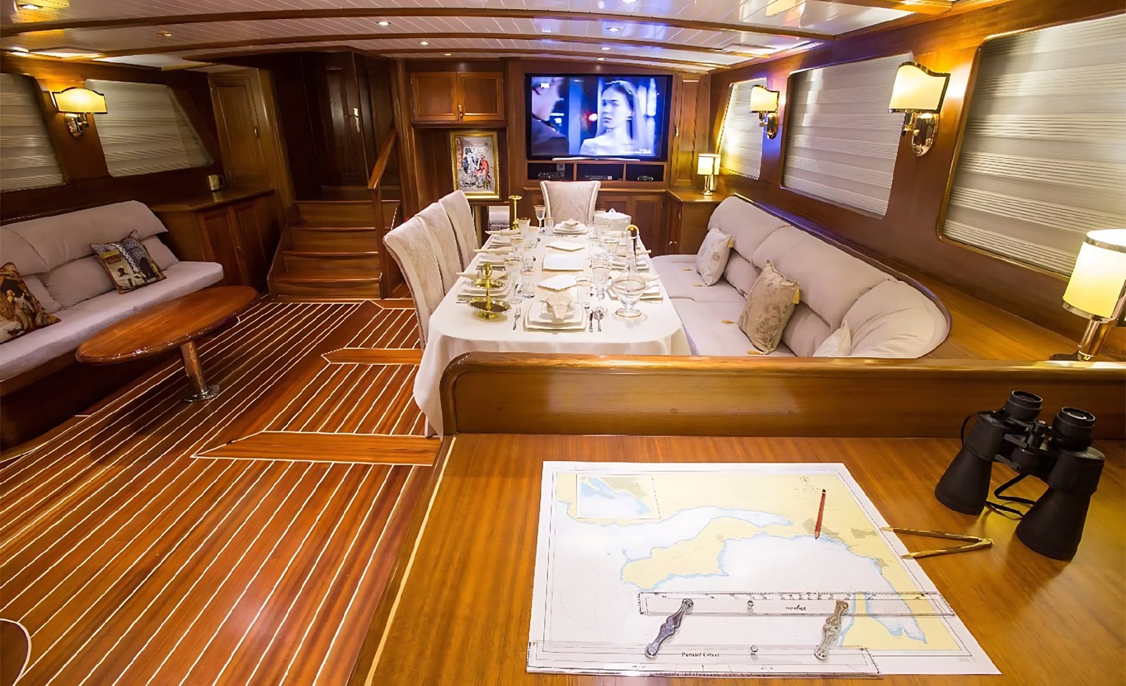 Ayrıca salonda LCD TV, DVD oynatıcı, müzik seti siz değerli mavi yolculuk konuklarımızın hizmetindedir.