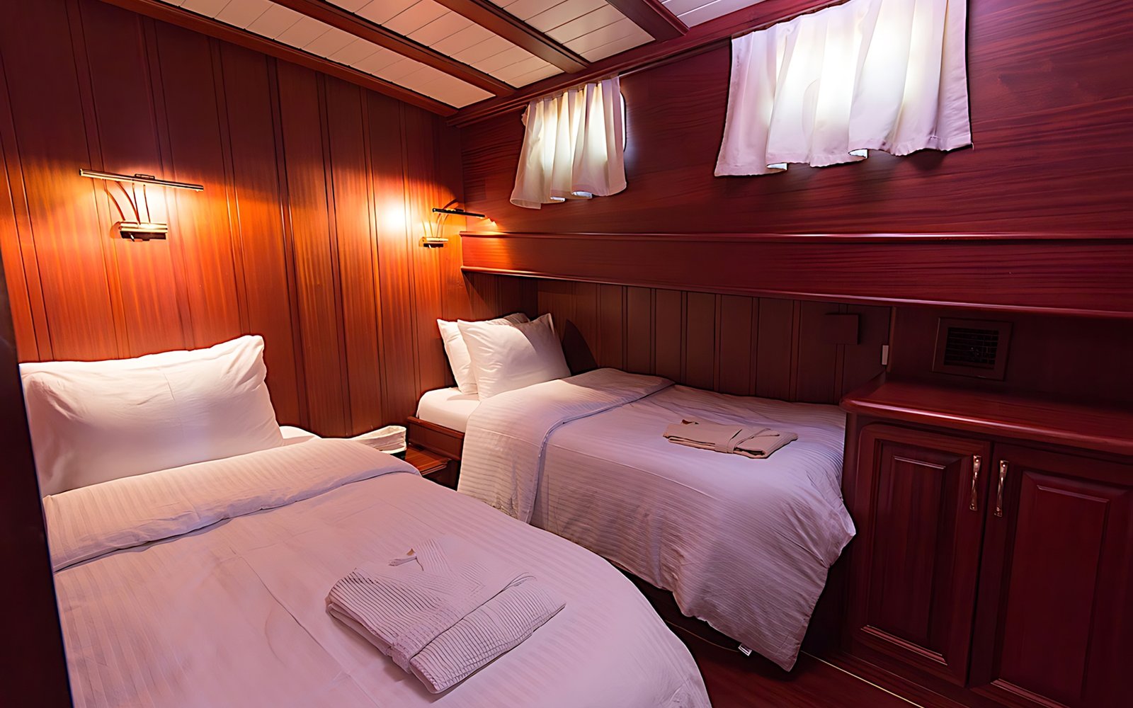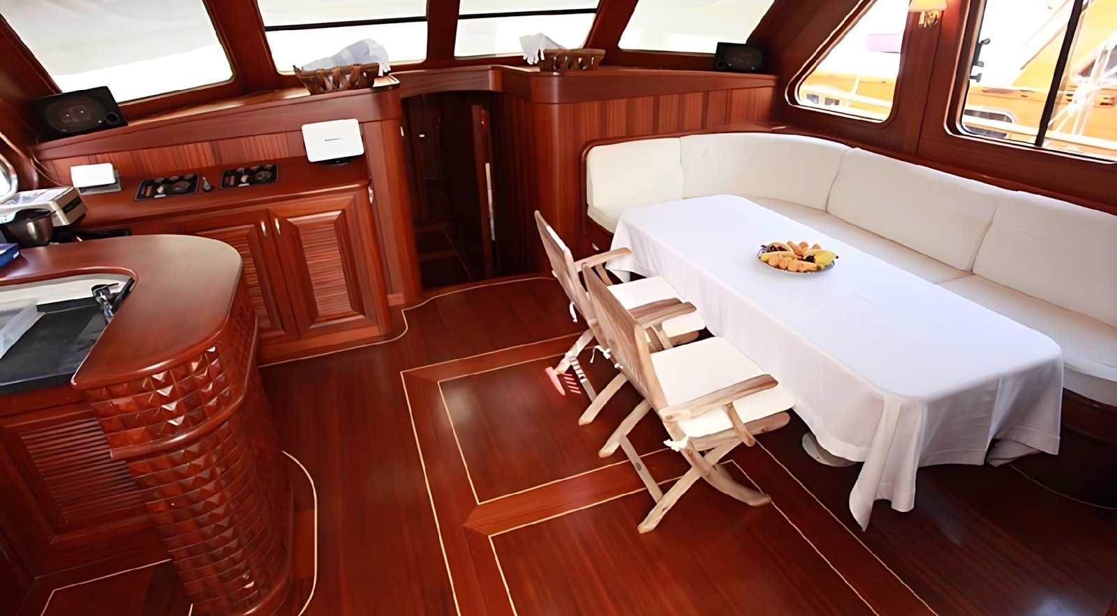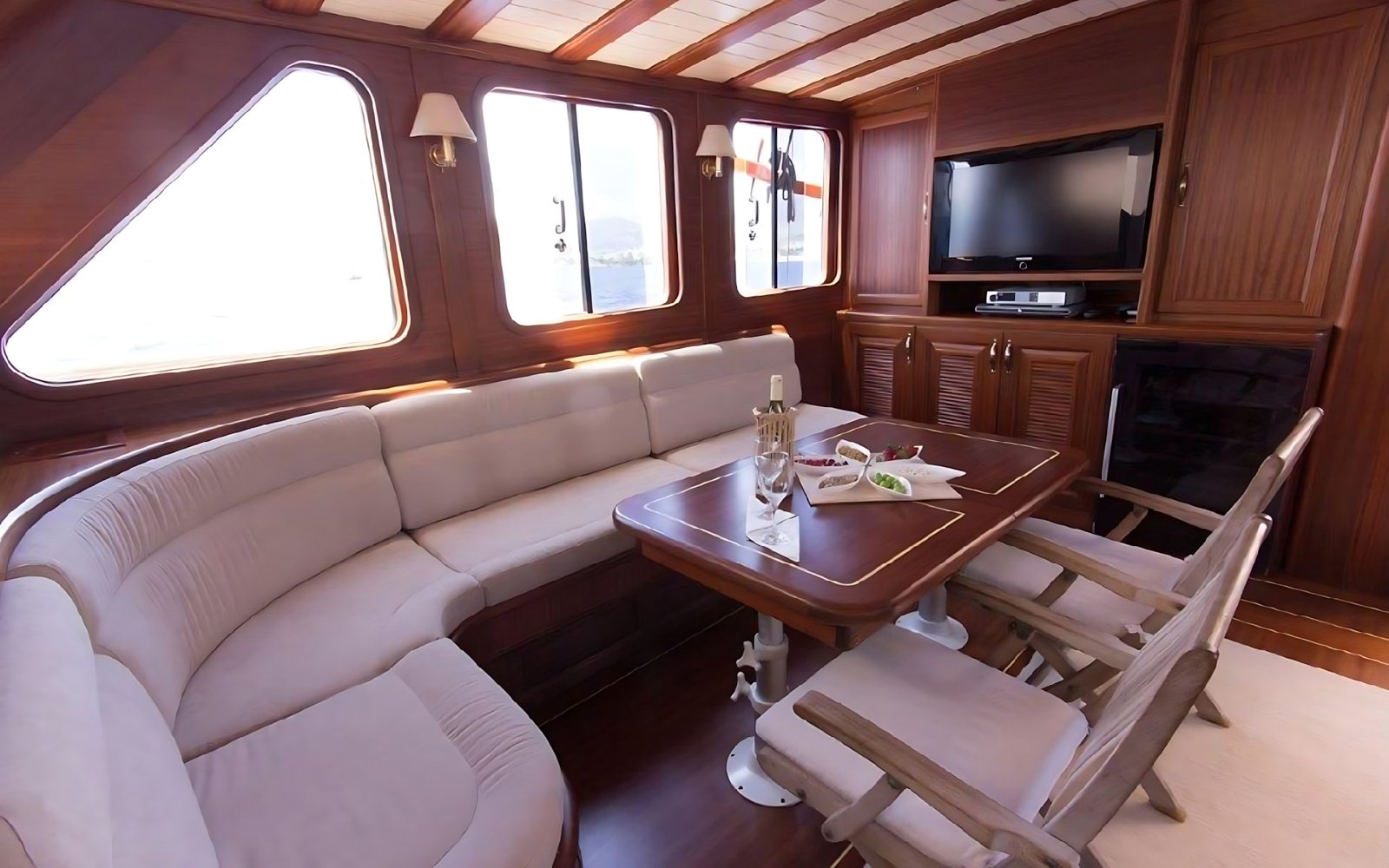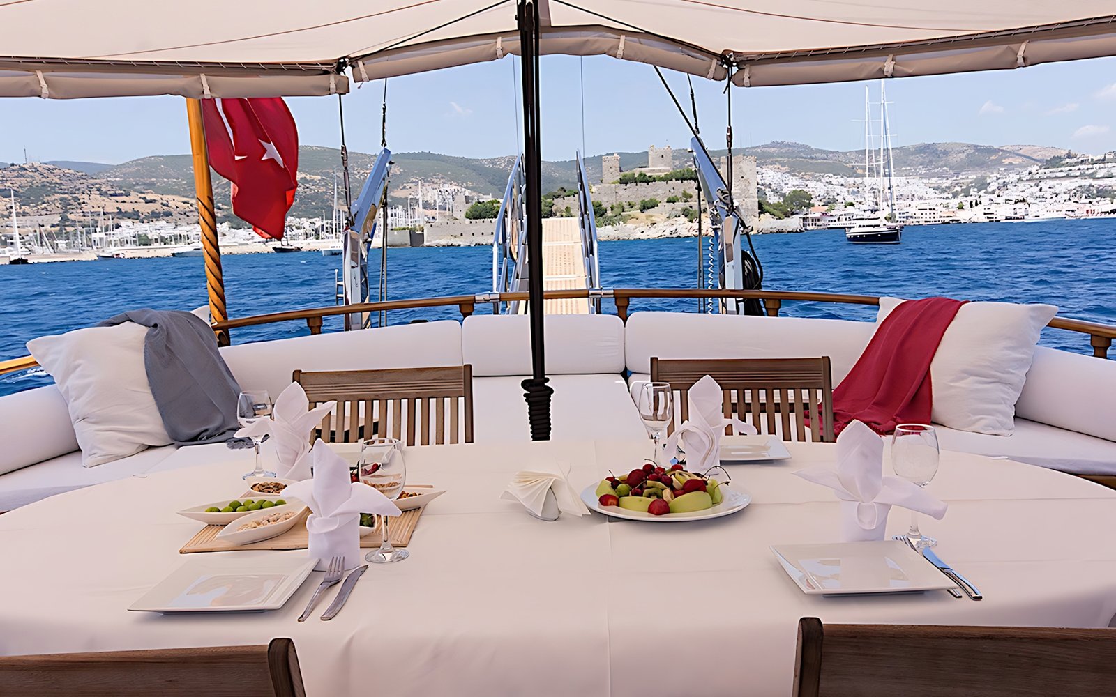 Seçenek 3 Siz hiç bir şeye karışmaz tatiliniz buyunca size tam pansiyon konaklama sunarız. Bu durumda Standart, Lüks ya da Delüks menülerimizden birini tercih ederek kişi başı günlük 35 ile 55 Euro arasında değişen bir bedel ödeyerek alkollü içecekler hariç herşey dahil tatilinizi yapabilirsiniz. Alkollü içeceklerinizi dilediğiniz şekilde temin edip tekneye getirebilirsiniz.