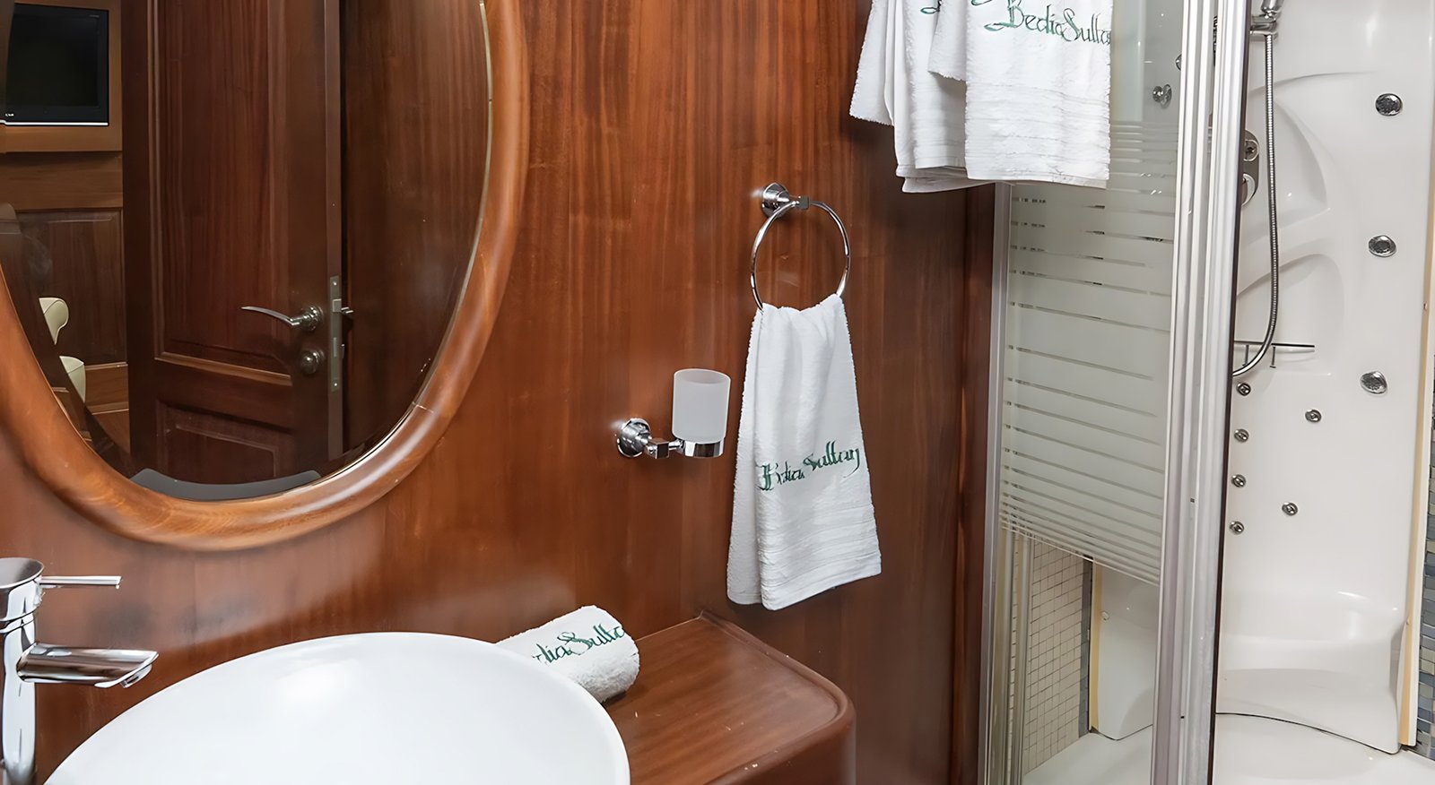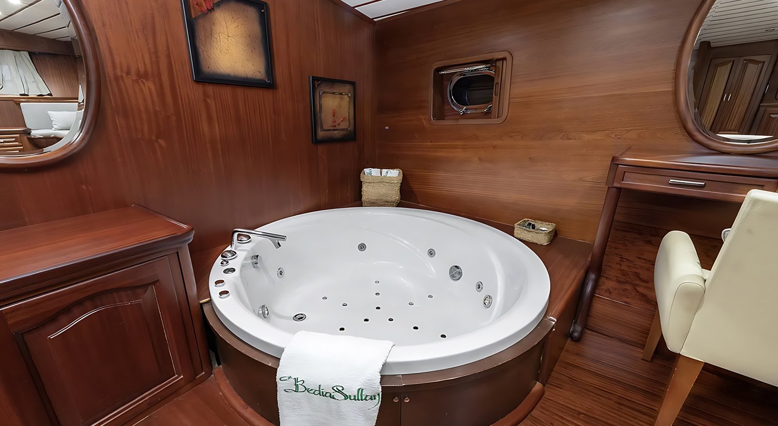 Gulet Bedia Sultan, 35 m. uzunluğunda ve 2008 yılından itibaren mavi tur sektöründe hizmet vermektedir. Teknemiz 1 kabin master ,1 Vip kabin ve 3 double kabin olmak üzere toplam 10 misafirin konaklayabileceği Vip yatır. Her kabinde son derece konforlu ve size özel duş ve wc imkanı sunmaktadır. Vip kabinde jacukuzi ile rahatlayabilirsiniz. Sıcak yaz günlerinde konforlu konaklama için kabinlerde ve salonda klima mevcuttur.