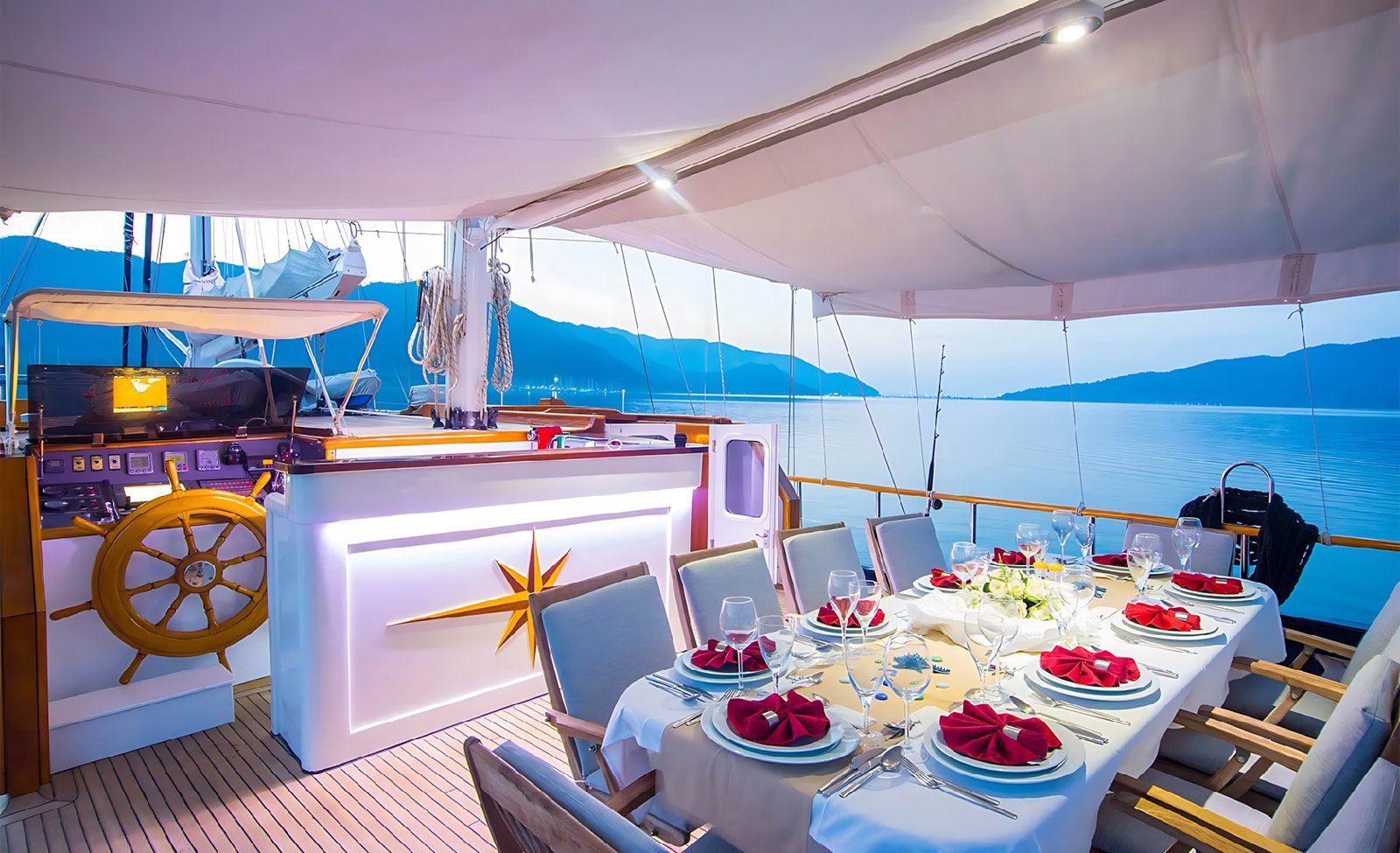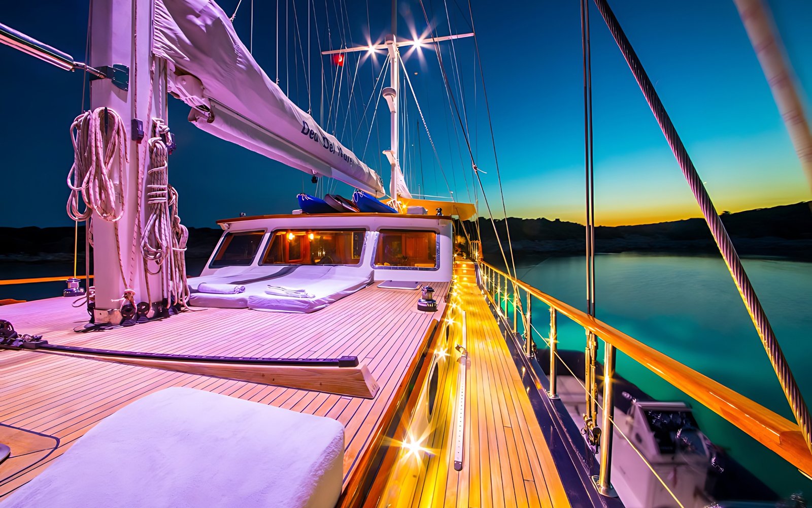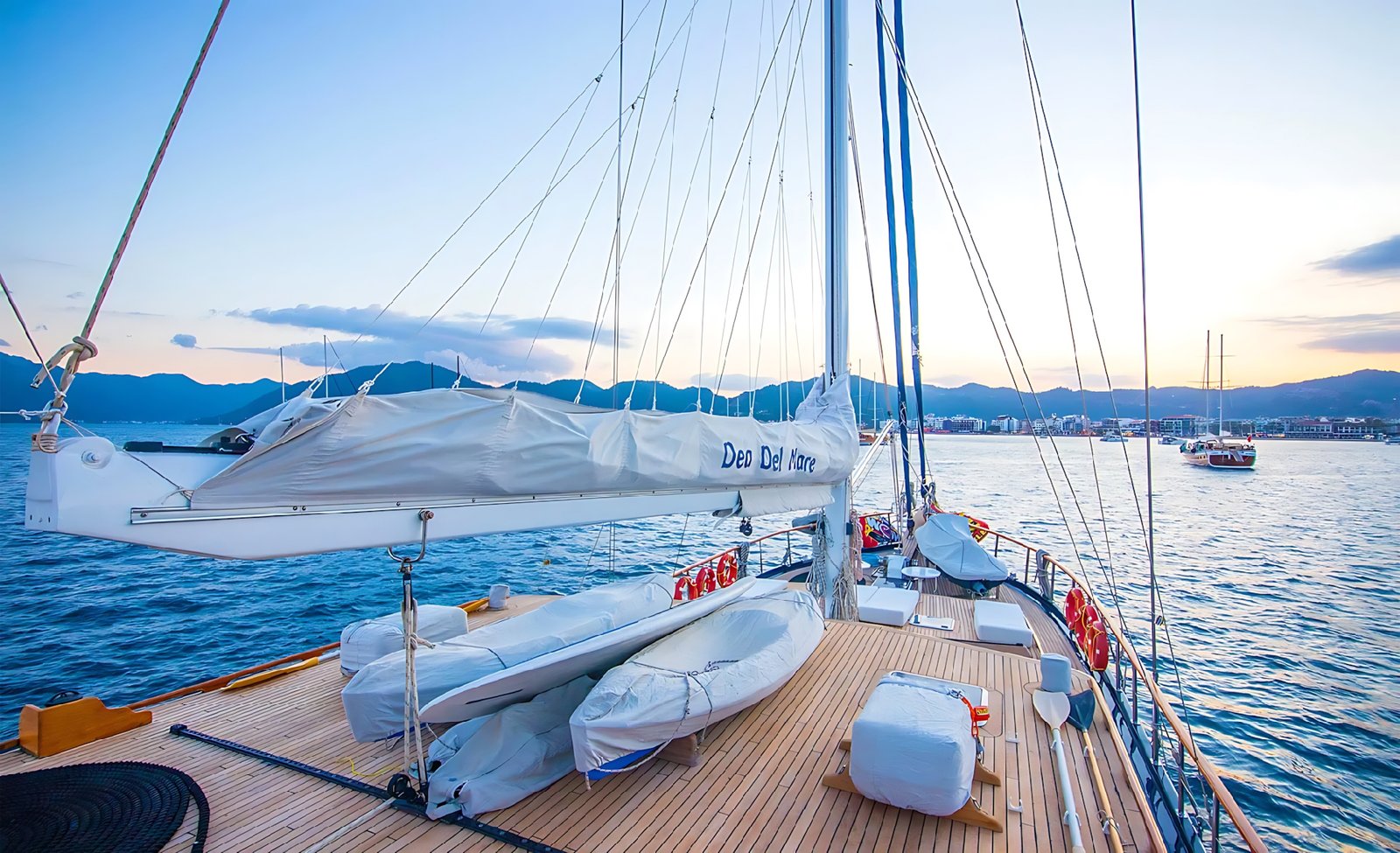 Gulet Dea Del Mare ile Marmaris, Fethiye, Göçek, Kekova ve Yunan adalarında, ister Balayı gibi özel bir tatilinizde olsun, isterse her yıl gelenek haline getirdiğiniz mavi tur tatilinizde tercih edebilirsiniz. Her biri mavi tur servisi konusunda profesyonel 4 mürettebat ile tatiliniz boyunca konforunuz, servis, yemek, temizlik ve günlük faaliyetlerin organizasyonu için hizmetinizde olacaktır.