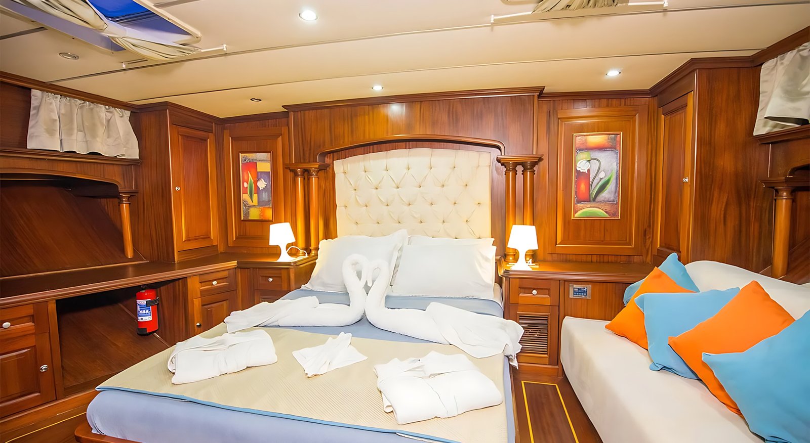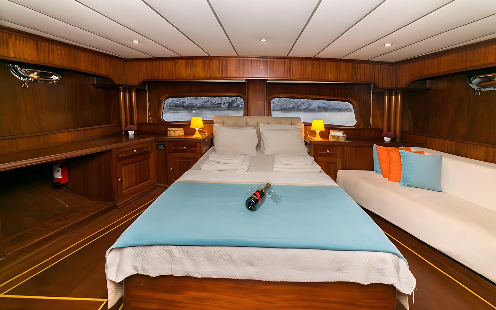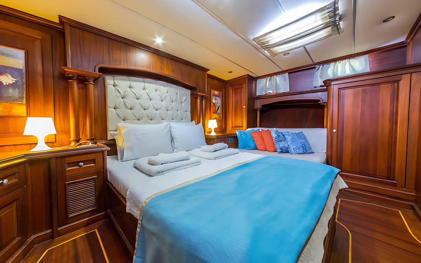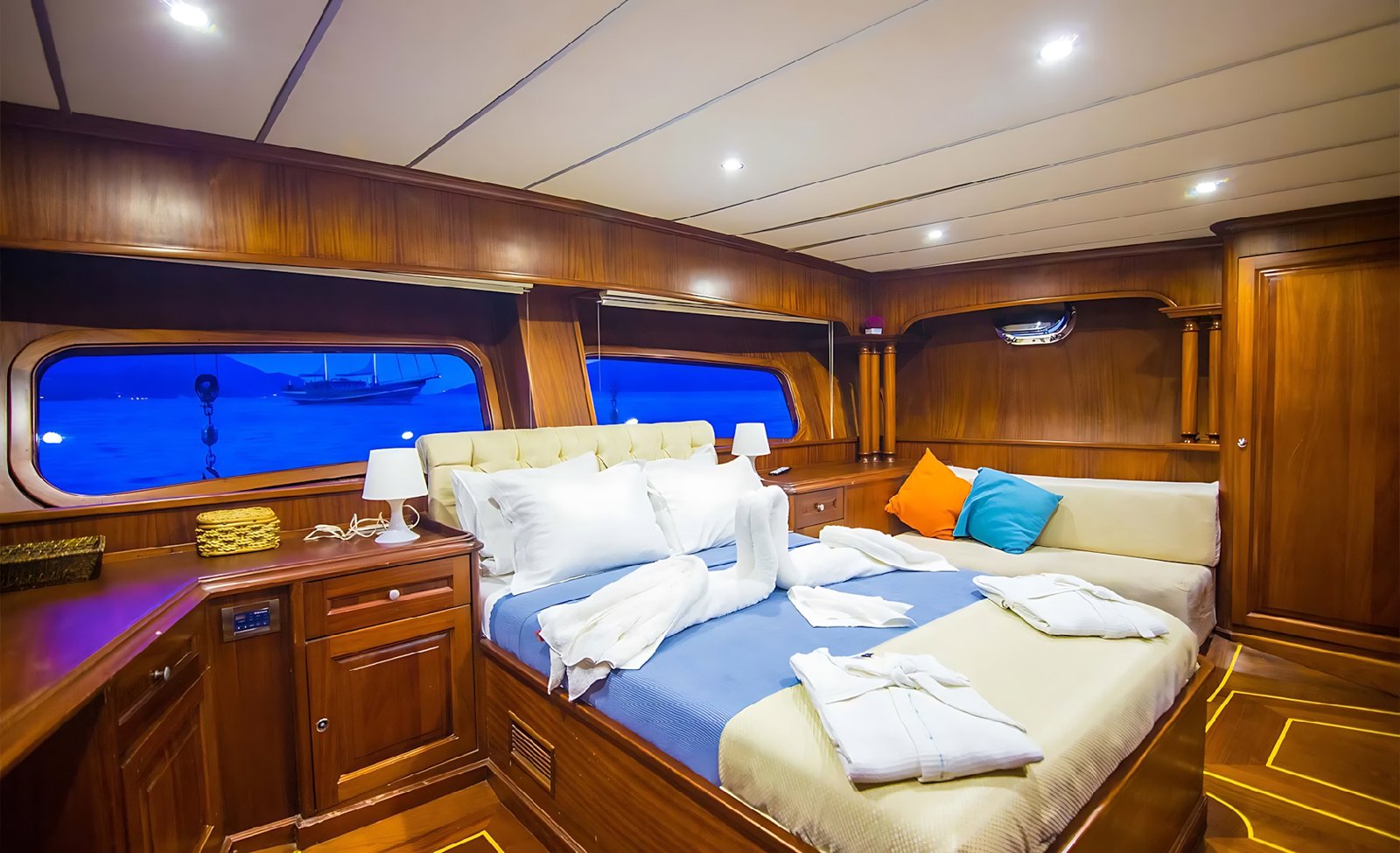 Gulet Dea Del Mare ile Marmaris, Fethiye, Göçek, Kekova ve Yunan adalarında, ister Balayı gibi özel bir tatilinizde olsun, isterse her yıl gelenek haline getirdiğiniz mavi tur tatilinizde tercih edebilirsiniz. Her biri mavi tur servisi konusunda profesyonel 4 mürettebat ile tatiliniz boyunca konforunuz, servis, yemek, temizlik ve günlük faaliyetlerin organizasyonu için hizmetinizde olacaktır.