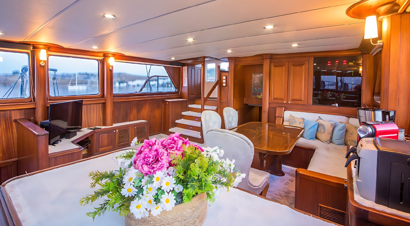 Gulet Dea Del Mare salonda ve arka oturma grubunda yeme ve içme alanları, Dvd/plazma tvsi ile film keyfi yapabilir, Gece gündüz yüksek ses kalitesine sahip Mp3,Cd çalarlarıyla müzik dinleyip eğlenebilir, Bilgisayarınız, tabletiniz ve telefonuzla her an istediğiniz yerde wifi ile internete girebilirsiniz. Yatımızın ön güvertesinde 10 kişi aynı anda güneşlenebilir ve akşam gün batımda içkinizi veya saat 5 çayını içebileceğiniz konforlu oturma gurubunda dinlenebilirsiniz. Yatımız da konfor ve kaliteli hizmetin yanı sıra yakıt ücreti karşılanması dahilinde su sporlar yapabilirsiniz ya da balık tutabileceğiniz ve denizde derinleri keşfedebileceğiniz snorkel ekipmanlarıyla size mutlu bir mavi tur sunacaktir.