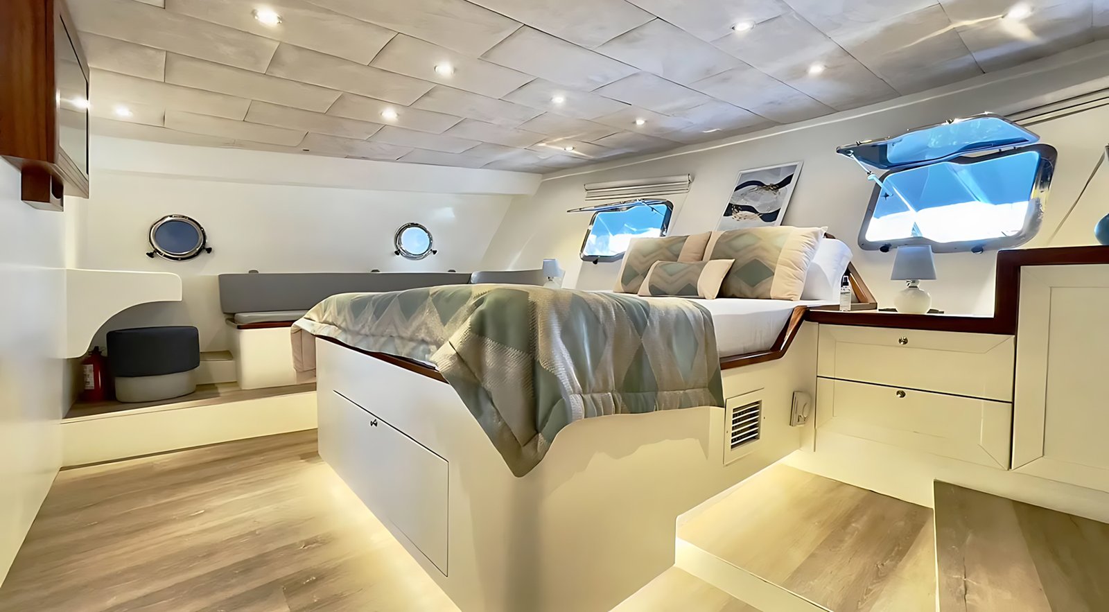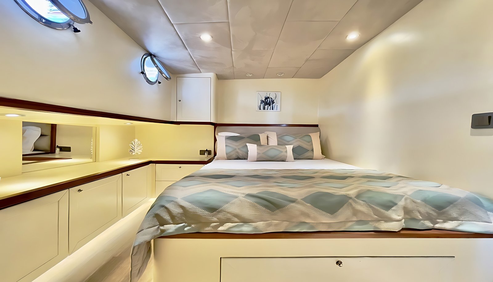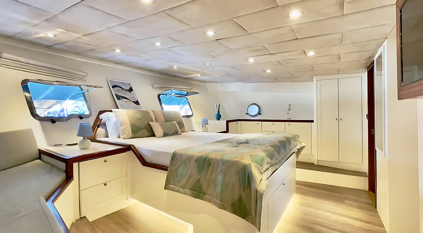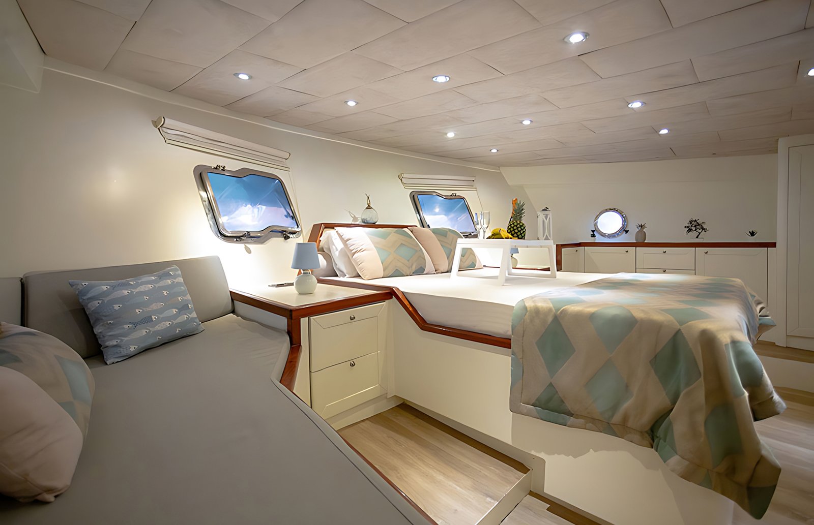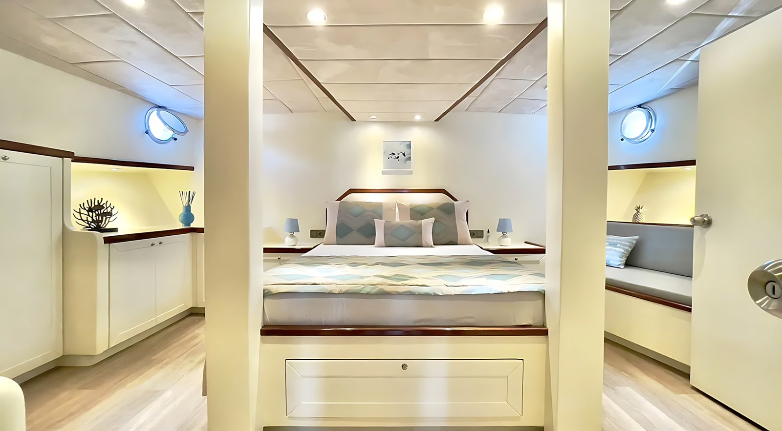 2008 yılında inşa edilen Gulet Derya Deniz 2019 yılında sizlerin konforu için tamamen yenilenmiştir. Klimalı kabinlerde 10 misafir için konaklama imkanı sunan Derya Deniz yatında 2 Master, 3 Double kabin vardır. Her kabinde ayrı WC ve duş ünitesi bulunmaktadır.