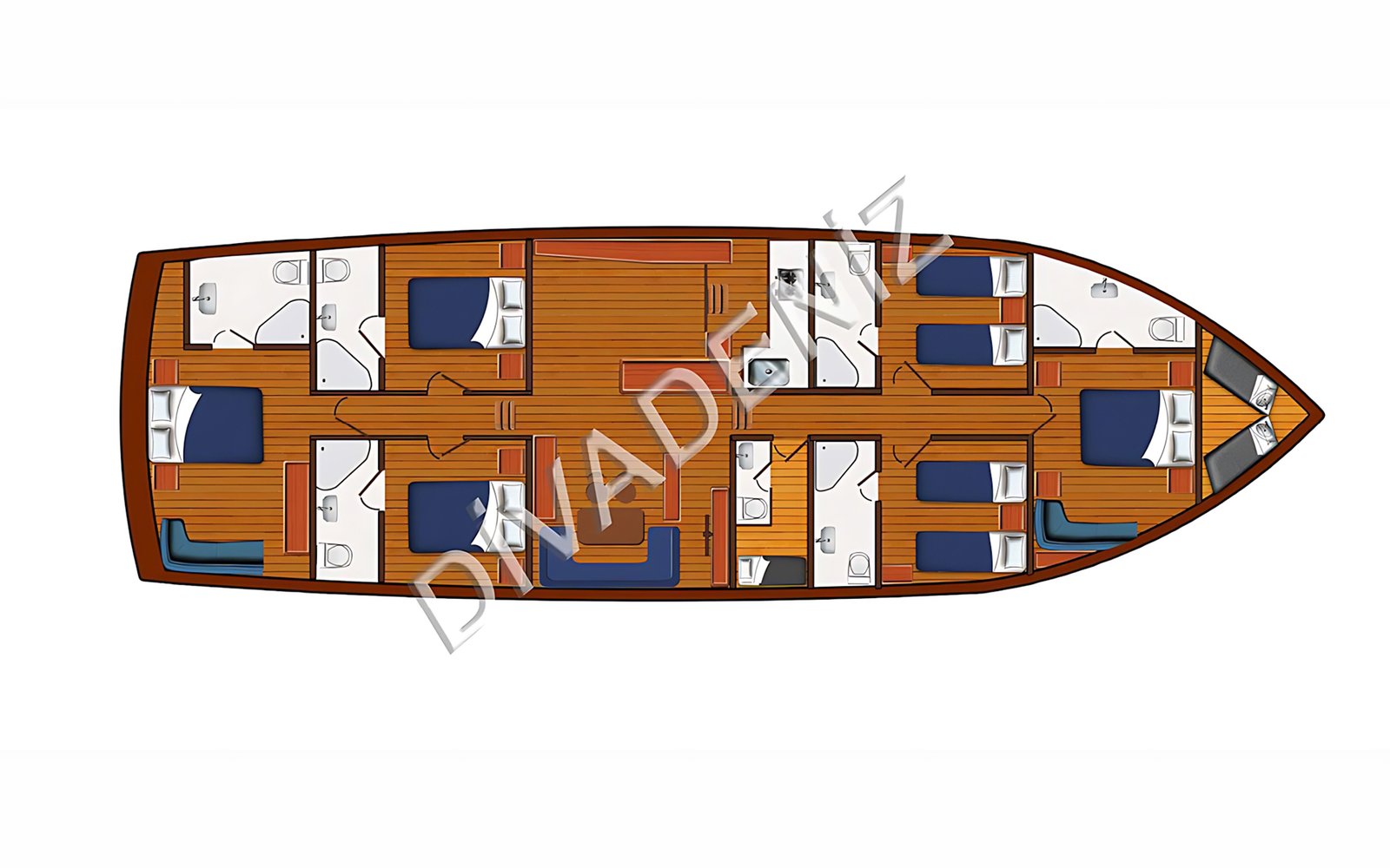 Gulet Diva Deniz özel misafirlerine Akdeniz ve Ege'de olağanüstü bir mavi tur tatili yaşatmak için 2011 yılında özel olarak tasarlanmıştır. Yatımız 28.40 m. uzunluğunda, olan teknemiz de 2 master, 2 double ve 2 twin olmak üzere toplam 12 misafirin konaklayabileceği lüks yatır. Her kabinde son derece konforlu ve size özel duş ve wc imkanı sunmaktadır. Sıcak yaz günlerinde konforlu konaklama için kabinlerde ve salonda klima mevcuttur.
