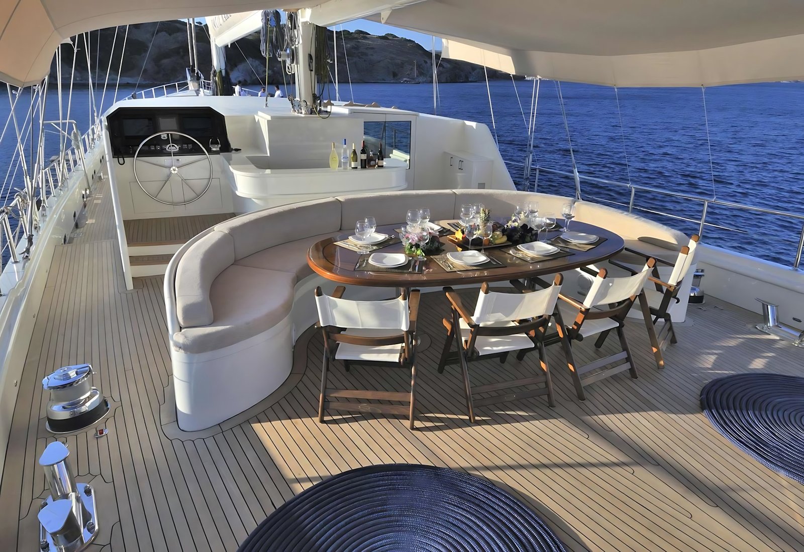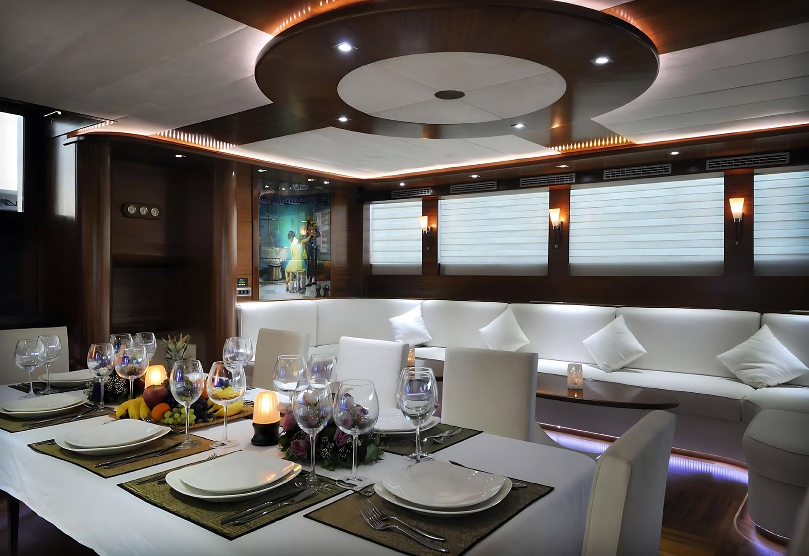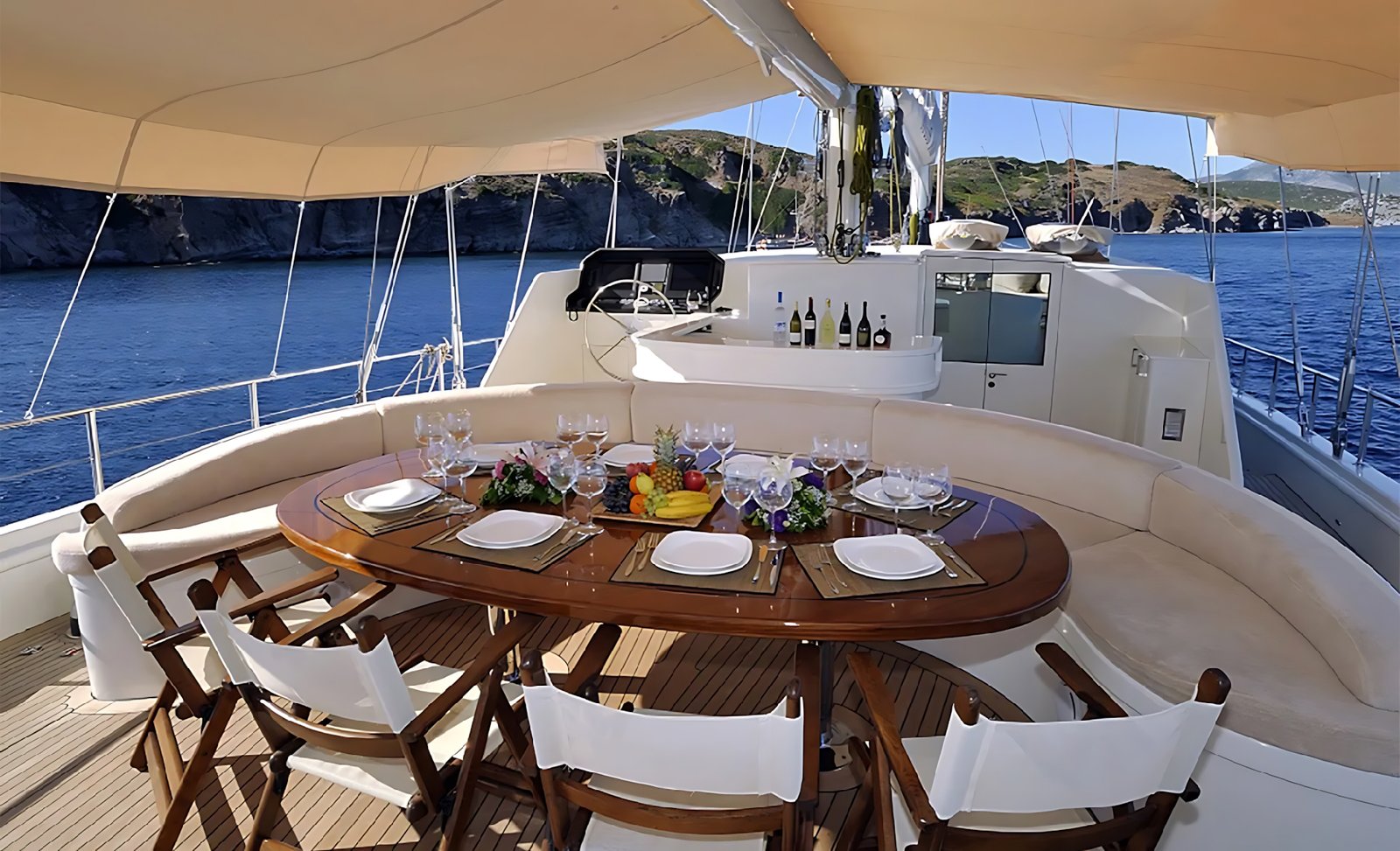 Seçenek 3 Siz hiç bir şeye karışmaz tatiliniz buyunca size tam pansiyon konaklama sunarız. Bu durumda Standart, Lüks ya da Delüks menülerimizden birini tercih ederek kişi başı günlük 35 ile 55 Euro arasında değişen bir bedel ödeyerek alkollü içecekler hariç herşey dahil tatilinizi yapabilirsiniz. Alkollü içeceklerinizi dilediğiniz şekilde temin edip tekneye getirebilirsiniz.