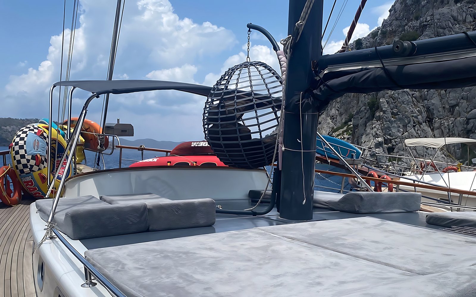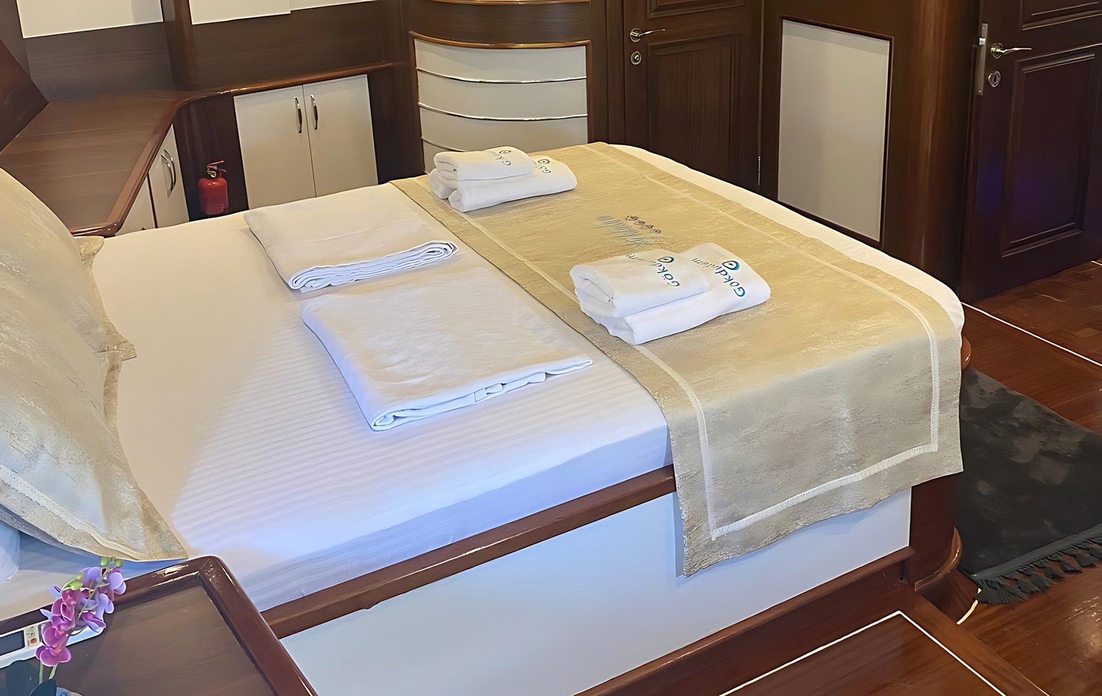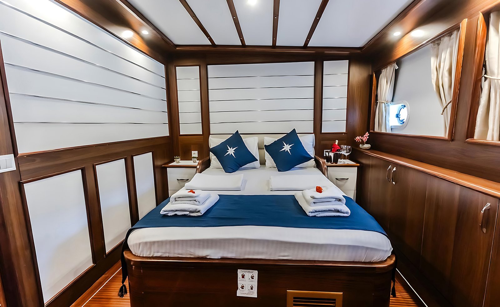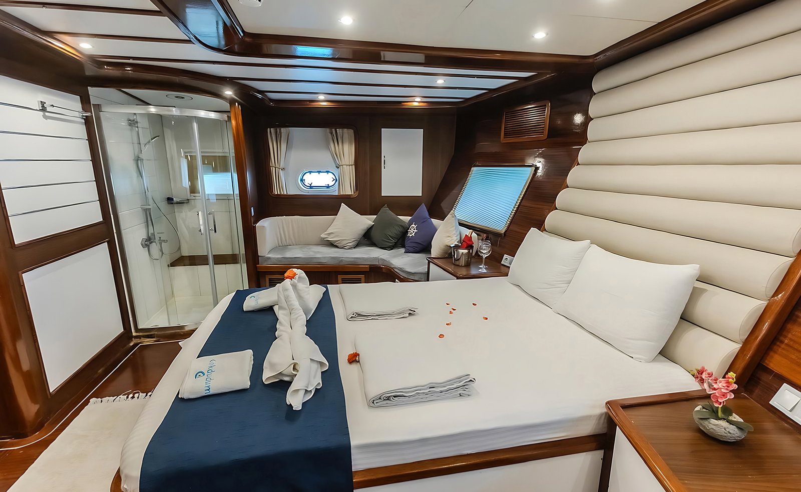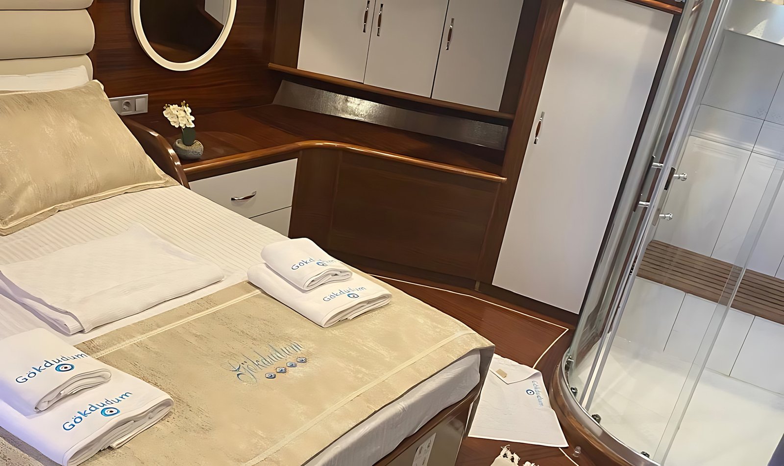 Gök Dudum Gulet 2022 yılı yapımı 26 m 5 kamara 11 misafir kapasiteli Guletimiz 2 adet büyük master kamaralı 2 adet double kamara ve 1 kamara üç kişilik bir double ve yanında tek kişilik yatak mevcut olan guletmiz son derece modern bir tasarım ve ayrıca su sporu opsiyonu mevcut.