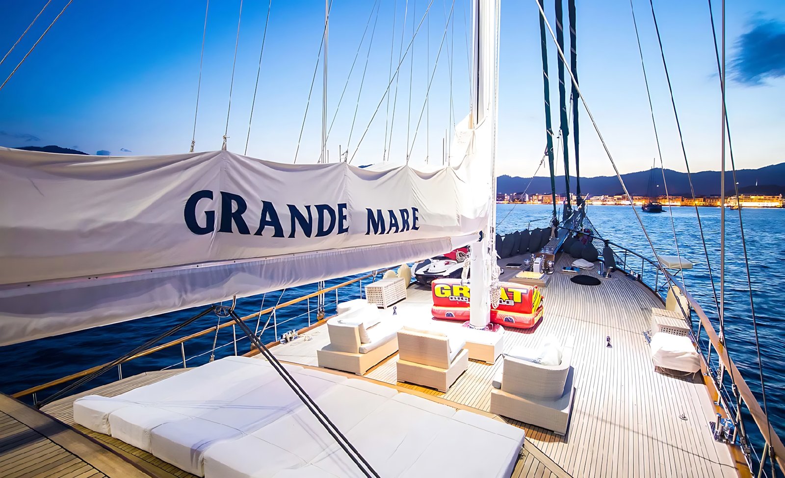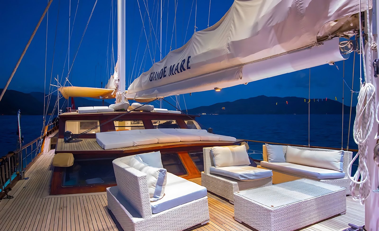 Gulet Grande Mare ile Marmaris, Fethiye, Göçek, Kekova ve Yunan adalarında, ister balayı gibi özel bir tatilinizde olsun, isterse her yıl gelenek haline getirdiğiniz mavi tur tatilinizde tercih edebilirsiniz. Her biri mavi tur servisi konusunda profesyonel 5 mürettebat ile tatiliniz boyunca konforunuz, servis,  yemek, temizlik ve günlük faaliyetlerin organizasyonu için tatiliniz boyunca için hizmetinizde olacaktır.