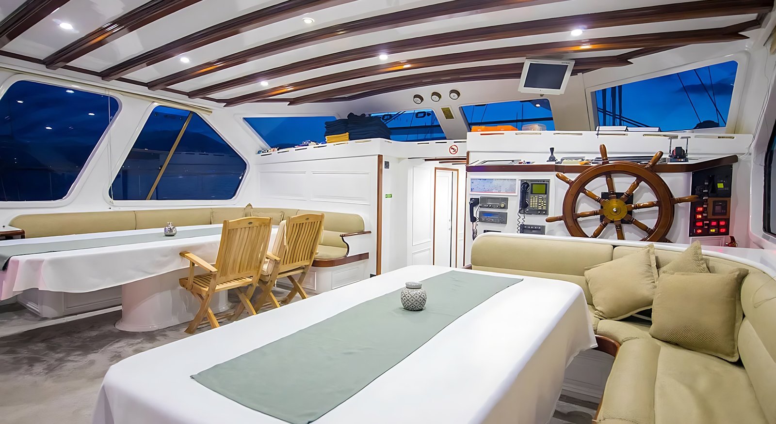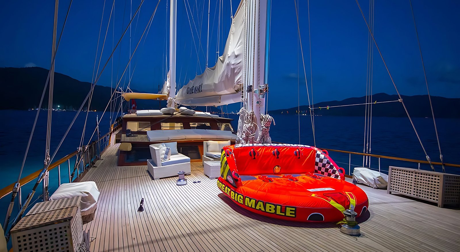 Gulet Grande Mare salonda ve arka oturma grubunda yeme ve içme alanları, Dvd/plazma tvsi ile film keyfi yapabilir, Gece gündüz yüksek ses kalitesine sahip Mp3,Cd çalarlarıyla müzik dinleyip eğlenebilir, Bilgisayarınız, tabletiniz ve telefonuzla her an istediğiniz yerde wifi ile internete girebilirsiniz. Yatımızın ön güvertesinde 12 kişi aynı anda güneşlenebilir ve akşam gün batımda içkinizi veya saat 5 çayını içebileceğiniz konforlu oturma gurubunda dinlenebilirsiniz. Kayak(extra), surf,kano ile su sporlar yapabilir. Balık tutabileceğiniz ve denizde derinleri keşfedebileceğiniz snorkel ekipmanlarıyla size mutlu bir mavi tur sunacaktir.