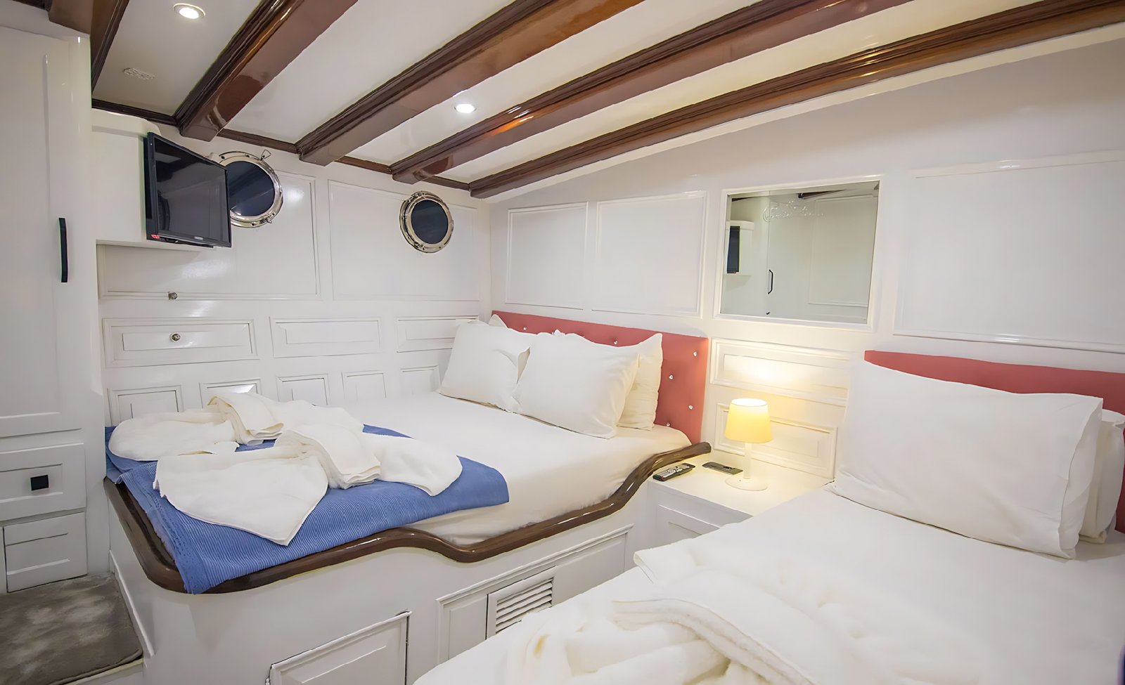 Gulet Grande Mare, 34 metre uzunluğunda, 2008 yılından itibaren mavi tur sektöründe hizmet vermektedir. Gulet Grande Mare 2012 senesinde yenileme çalışmasından sonra daha lüks ve modern dizayna kavuşmuştur. Teknemiz 3 master kabin, 2 double kabin ve 1 triple kabin olmak üzere toplam 12 misafirin konaklayabileceği Vip yatır. Her kabinde son derece konforlu ve size özel duş ve ev tipi wc imkanı sunmaktadır. Sıcak yaz günlerinde konforlu konaklama için kabinlerde ve salonda klima mevcuttur.