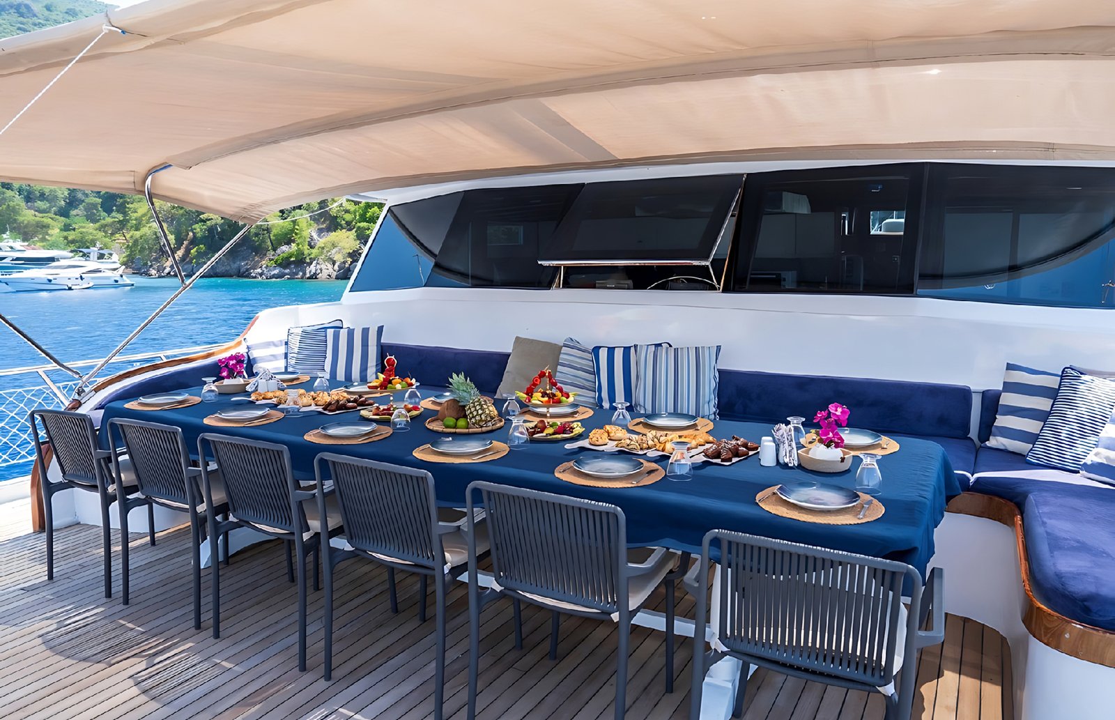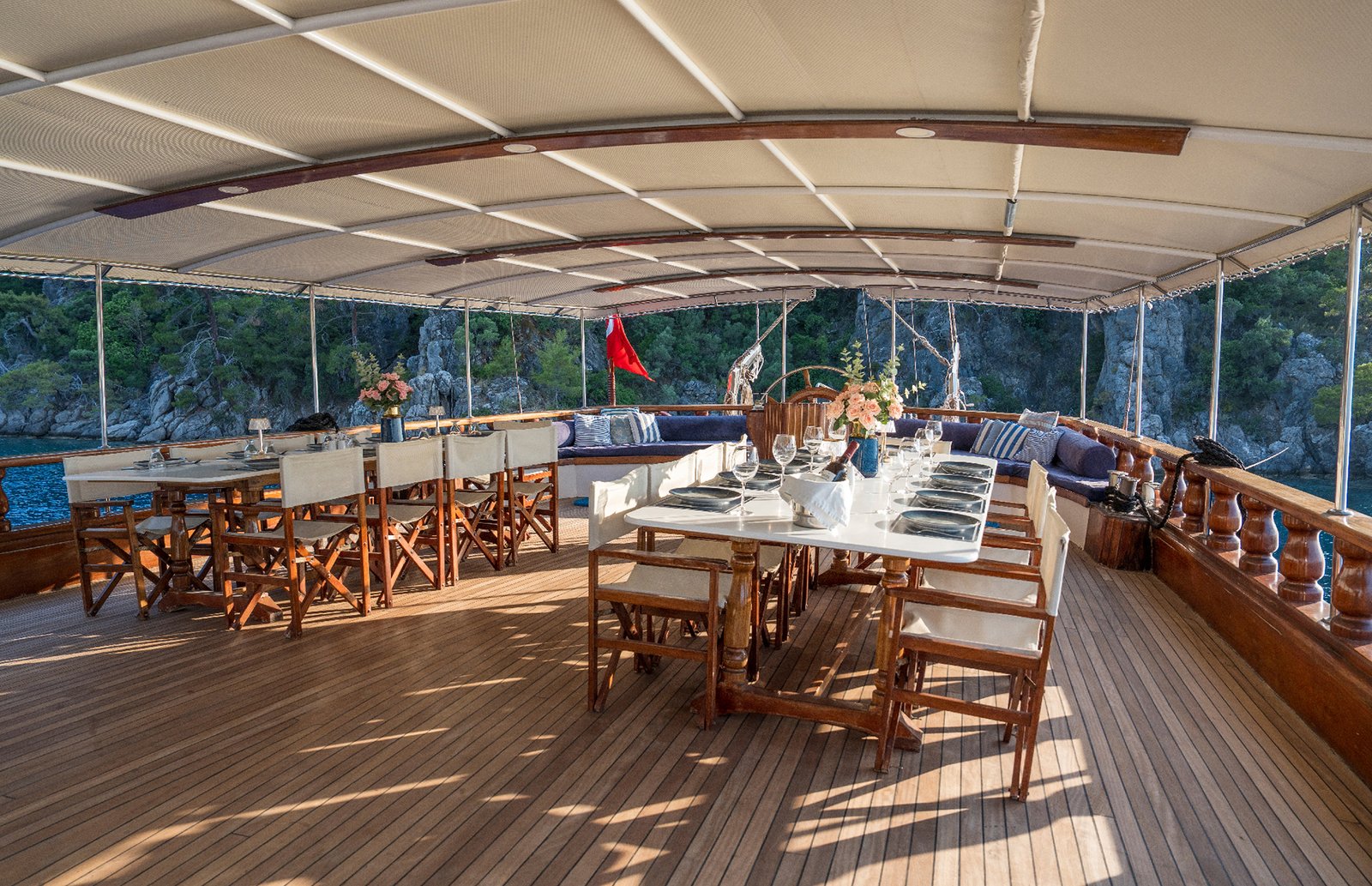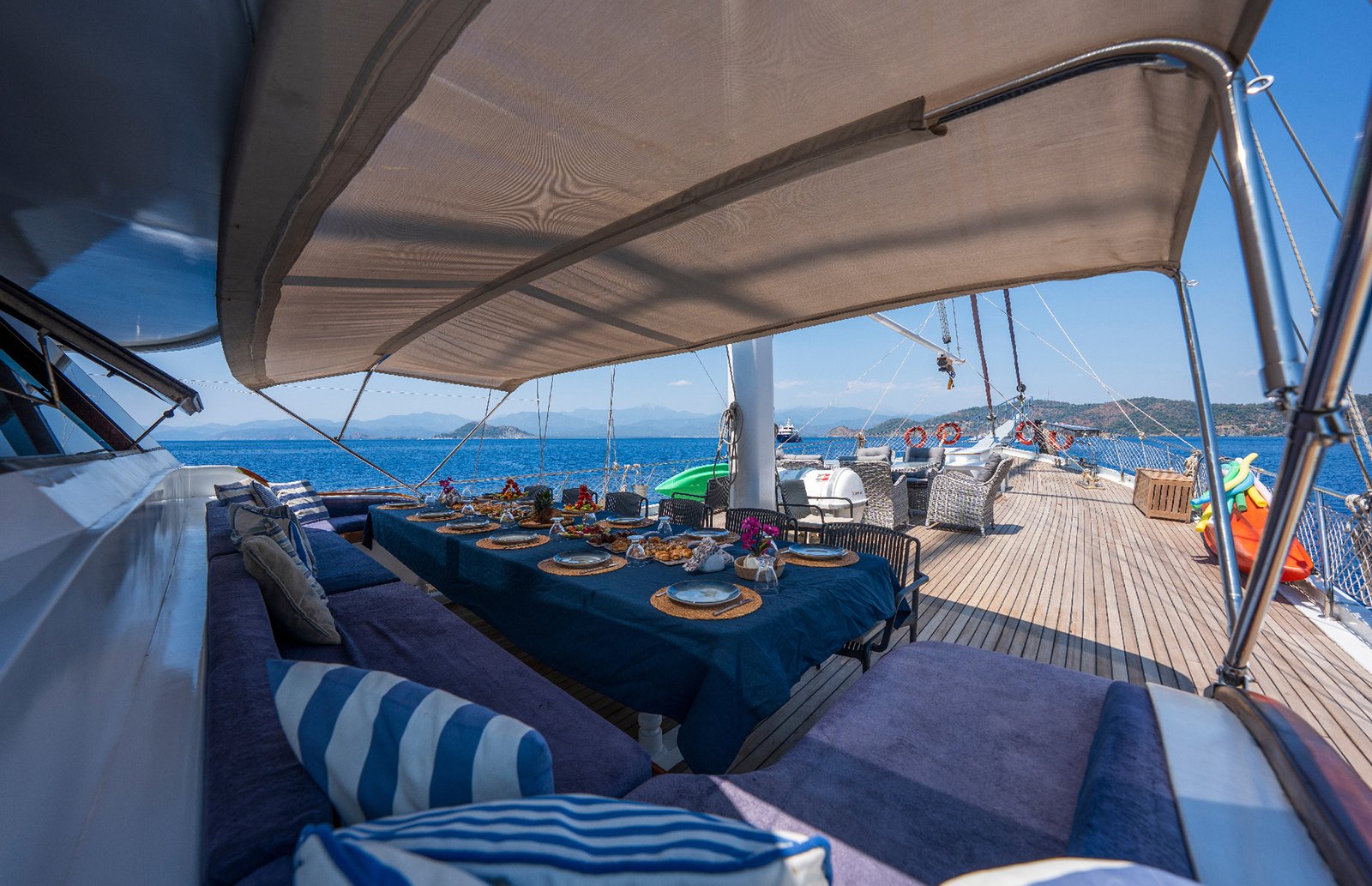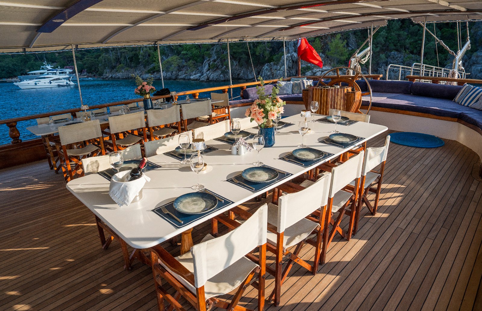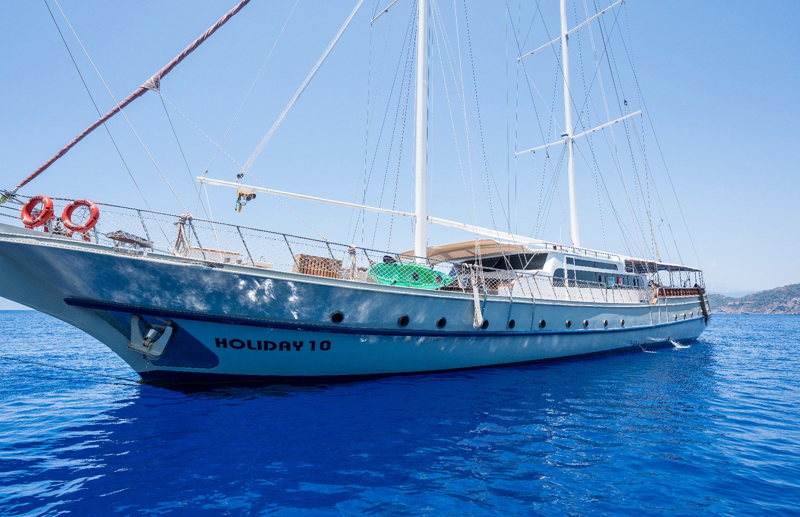 Gulet Holiday 10 ile Marmaris, Hisarönü, Bozburun, Bodrum, Fethiye, Göçek, Kaş, Kekova ve Yunan adalarında, rotalarında mükemmel bir mavi tur yaşamak mümkün. Her biri mavi tur servisi konusunda profesyonel 5 mürettebat ile tatiliniz boyunca konforunuz için hizmetinizde olacaktır.