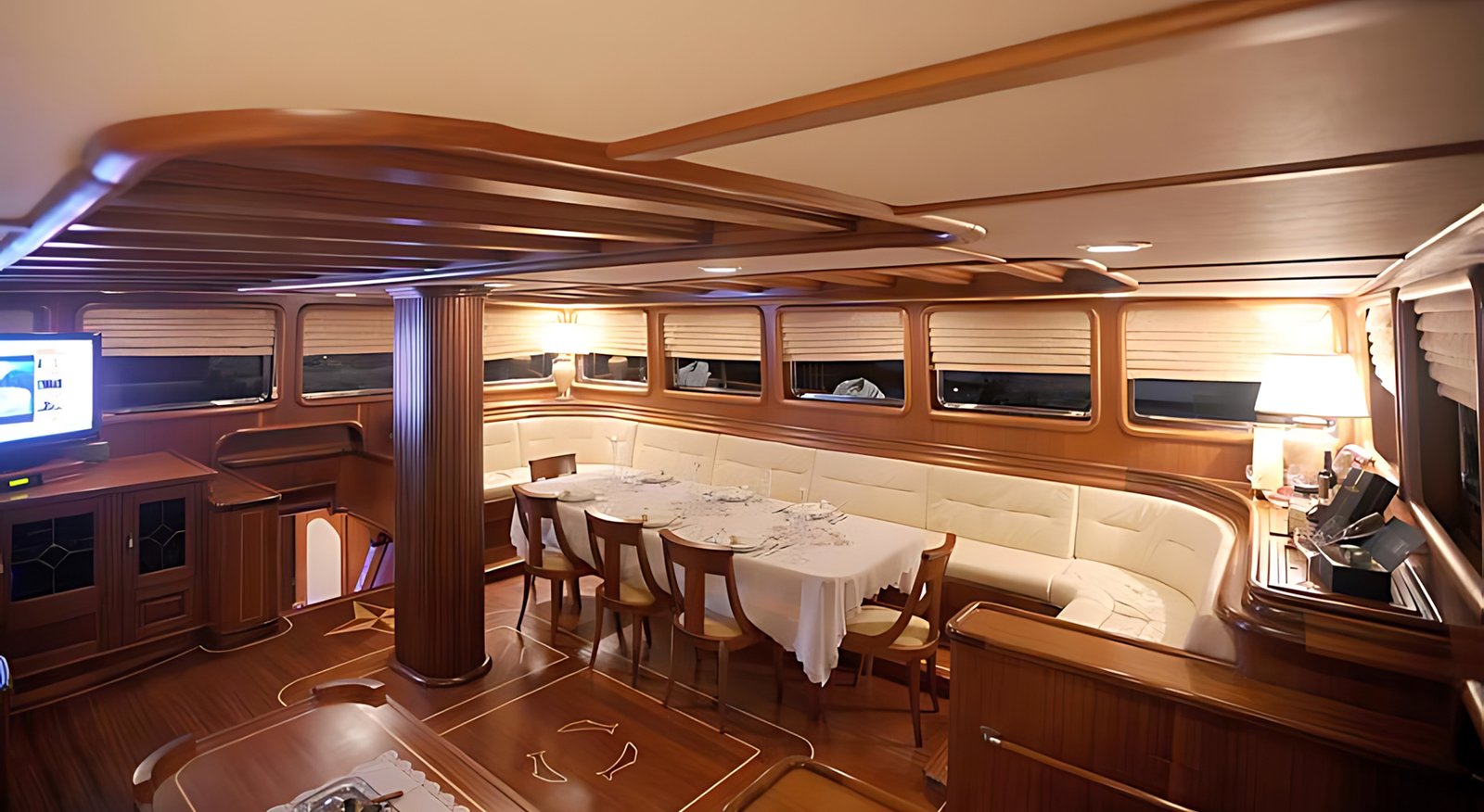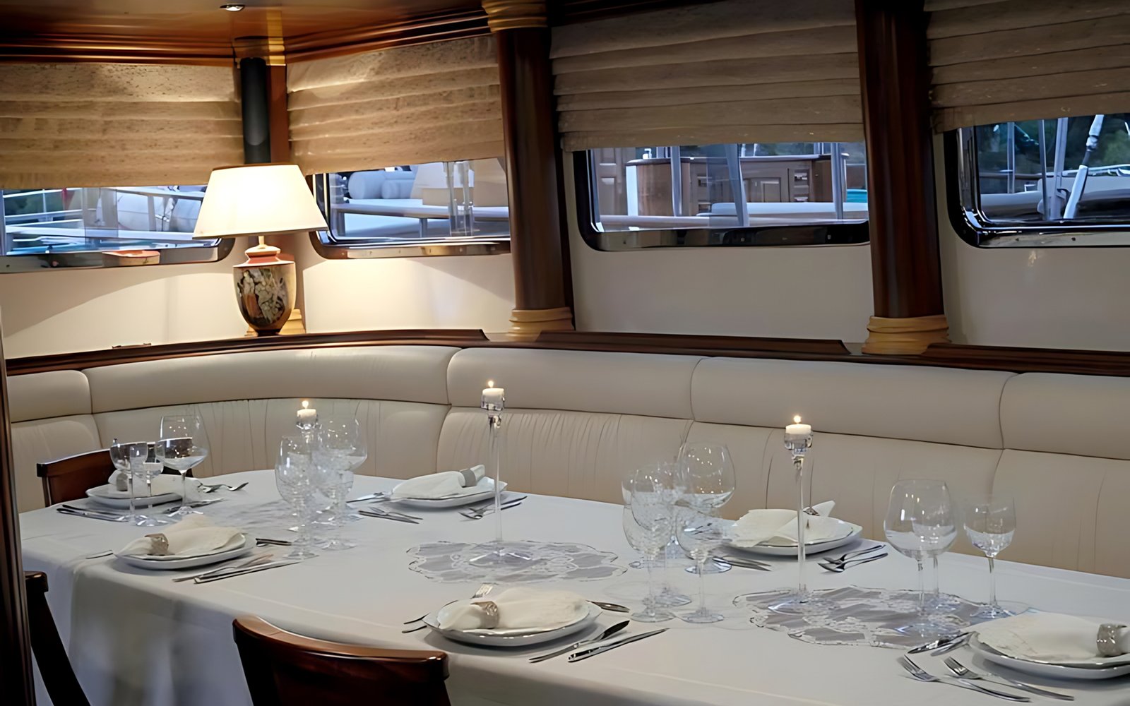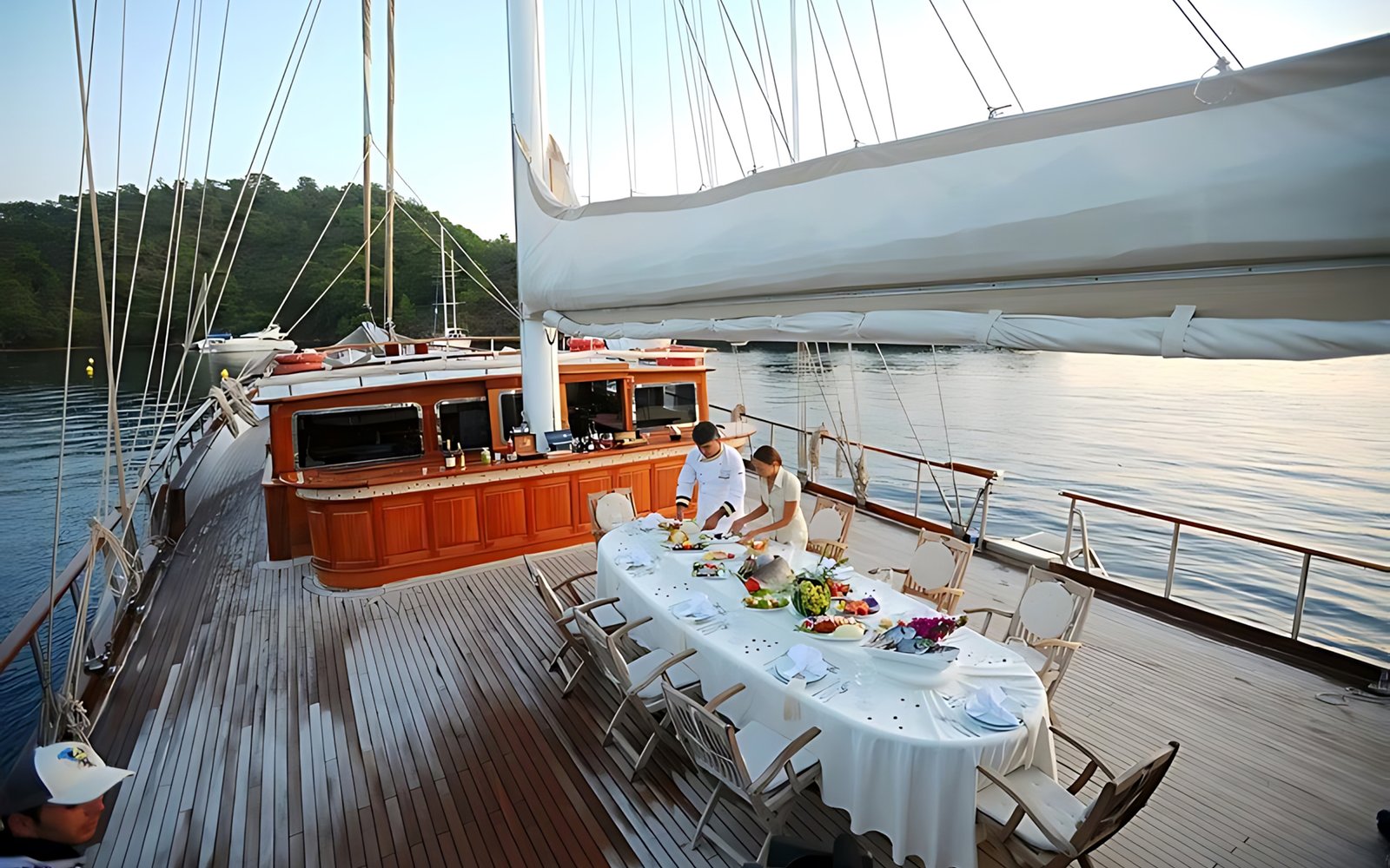 Seçenek 3 Siz hiç bir şeye karışmaz tatiliniz buyunca size tam pansiyon konaklama sunarız. Bu durumda Standart, Lüks ya da Delüks menülerimizden birini tercih ederek kişi başı günlük 35 ile 55 Euro arasında değişen bir bedel ödeyerek alkollü içecekler hariç herşey dahil tatilinizi yapabilirsiniz. Alkollü içeceklerinizi dilediğiniz şekilde temin edip tekneye getirebilirsiniz.