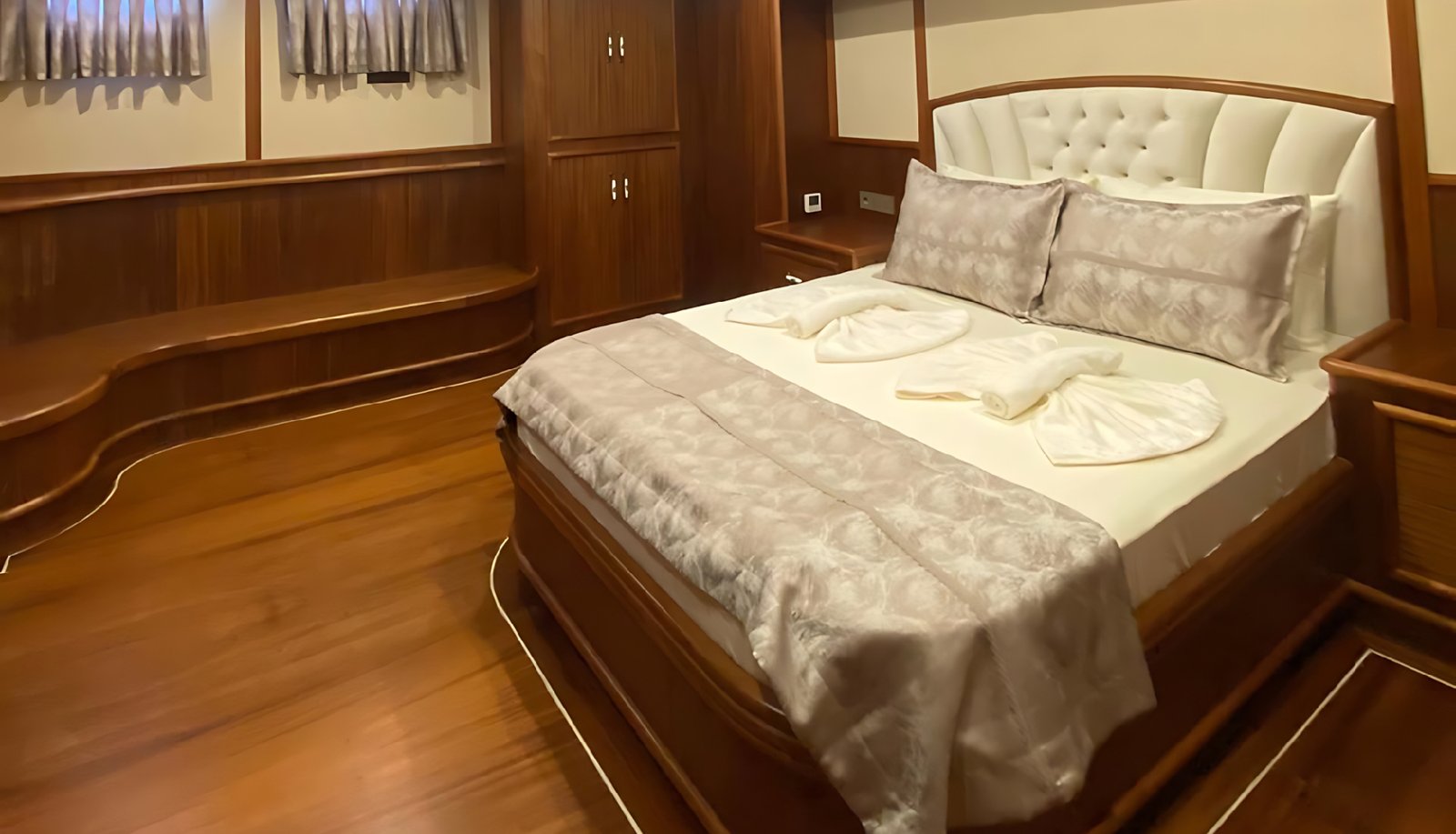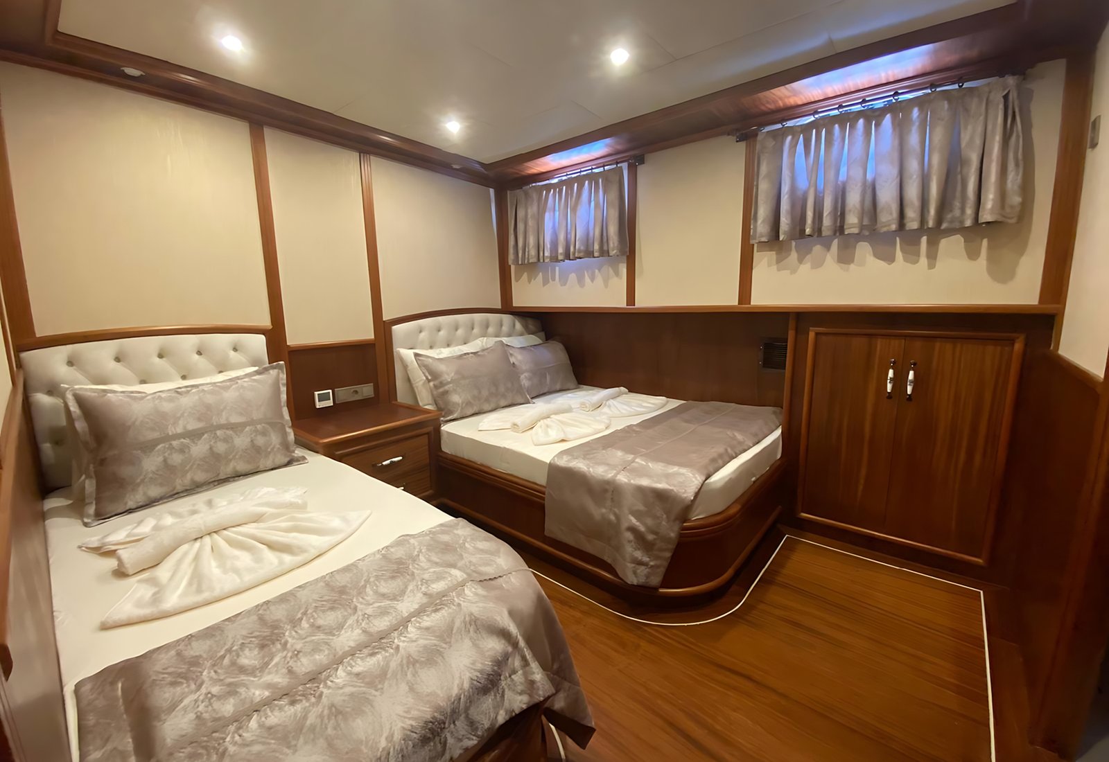Teknemizde  2 master, 2 double 2 Triple kabin olmak üzere toplam  12 misafirin konaklayabileceği Vip yatır. Her kabinde son derece konforlu ve size özel duş ve wc imkanı sunmaktadır.