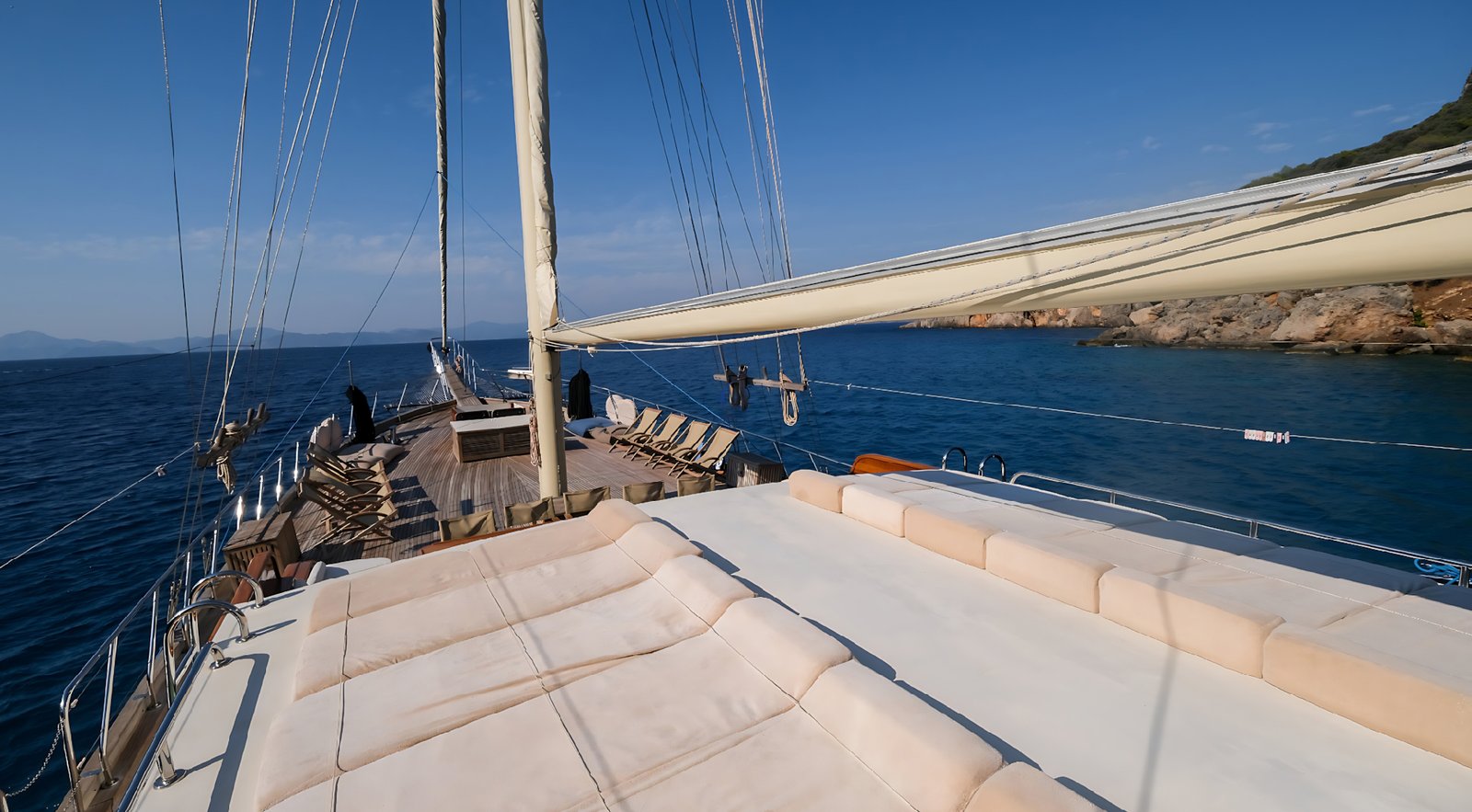 Yatımız mavi yolculuğunuz süresince hergün hava şartlarına göre yelken ile seyirin keyfini misafirlerimize sunmaktadır.